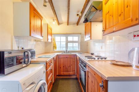 Kitchen / Diner (L Shaped) - 4.65m x 3.84m (15'3 x 12'7) - Single drainer sink unit, mixer tap, cupboard under, range of base and wall mounted units, fitted electric oven, four ring hob over, cooker hood above, plumbing for washing machine, exposed ceiling beams,night storage heater, built-in storage cupboard with shelving, front and rear aspect windows with a private outlook over the grounds.