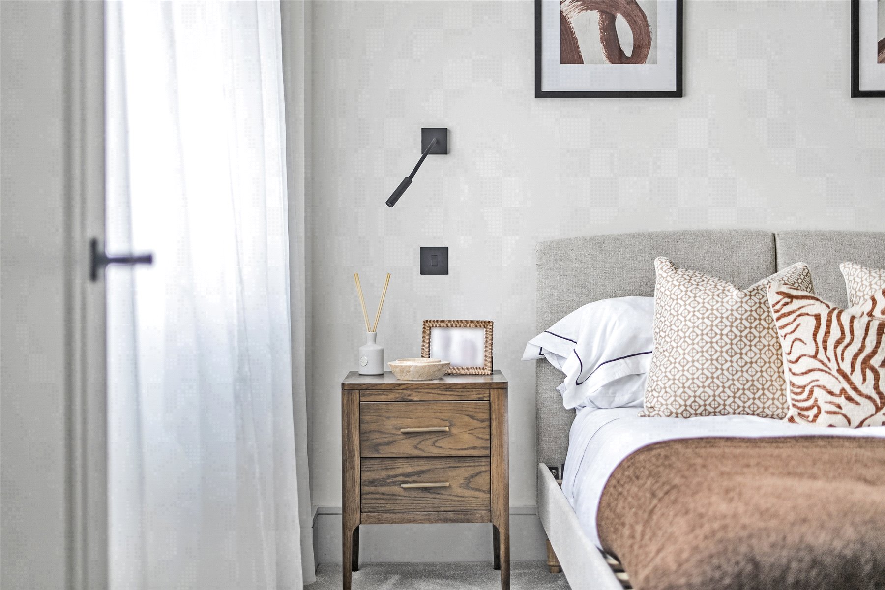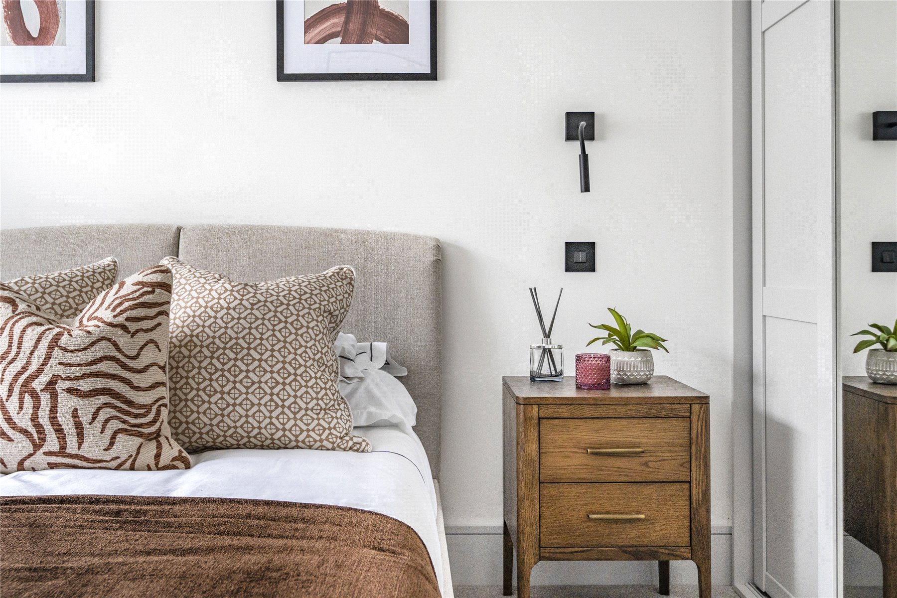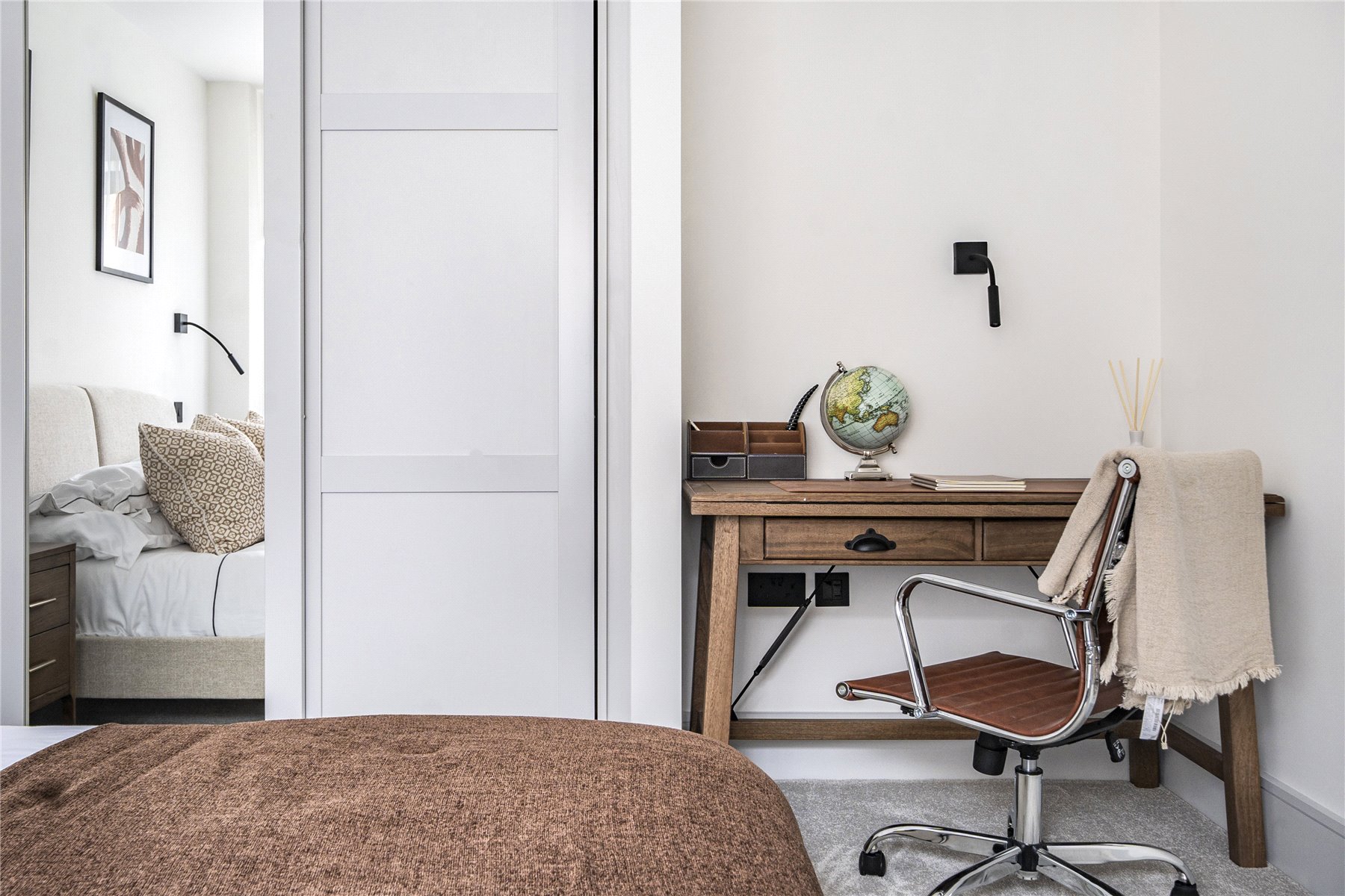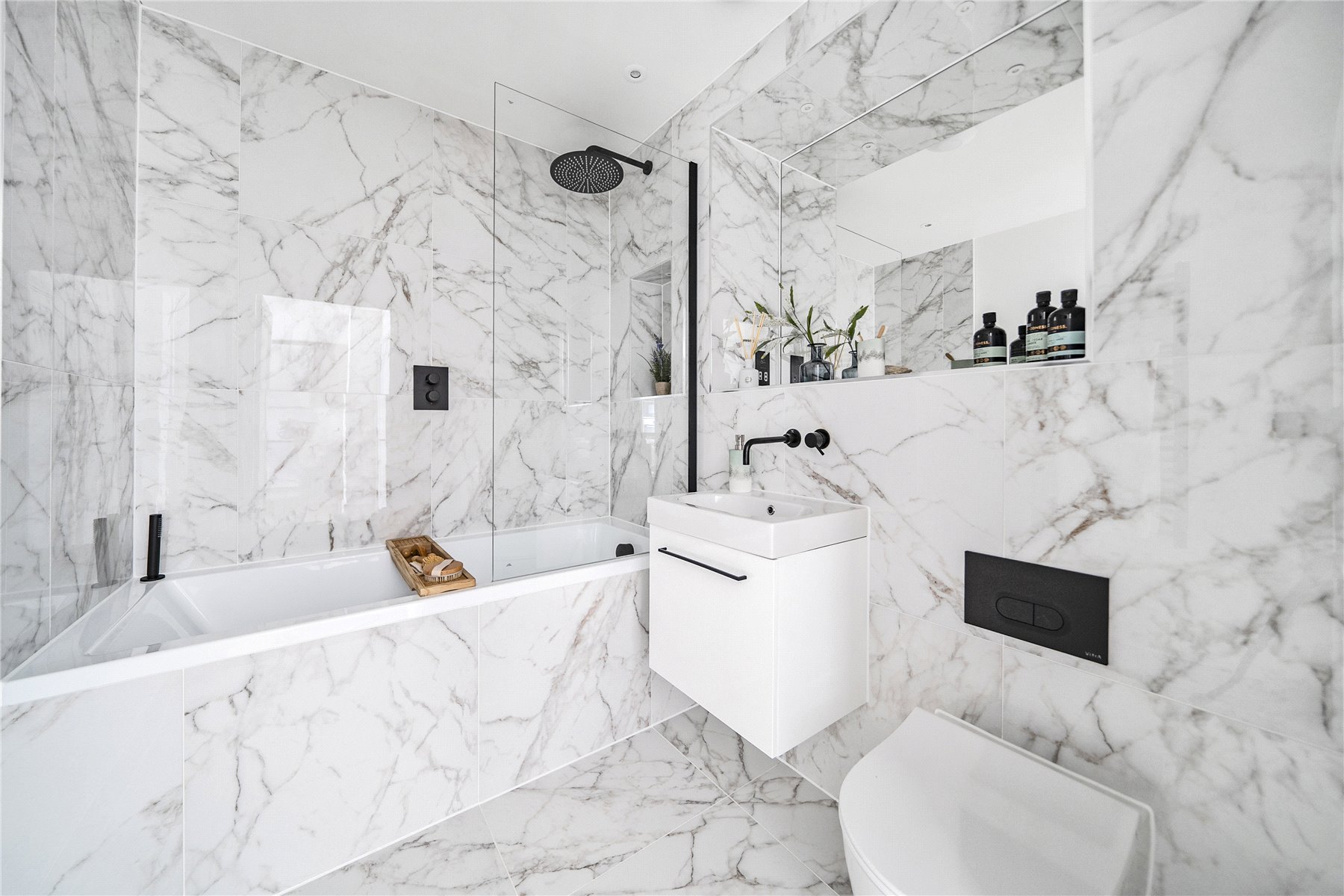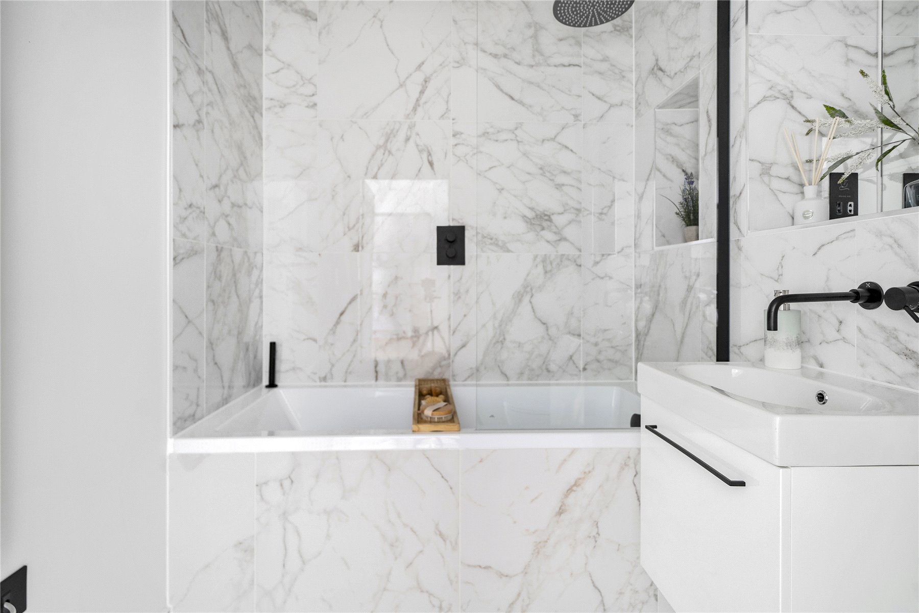 The luxury bathroom boasts elegant matt black brassware, underfloor heating, and a towel radiator for that extra touch of comfort. The spacious master bedroom includes fitted wardrobes, offering generous storage with a clean, modern aesthetic.