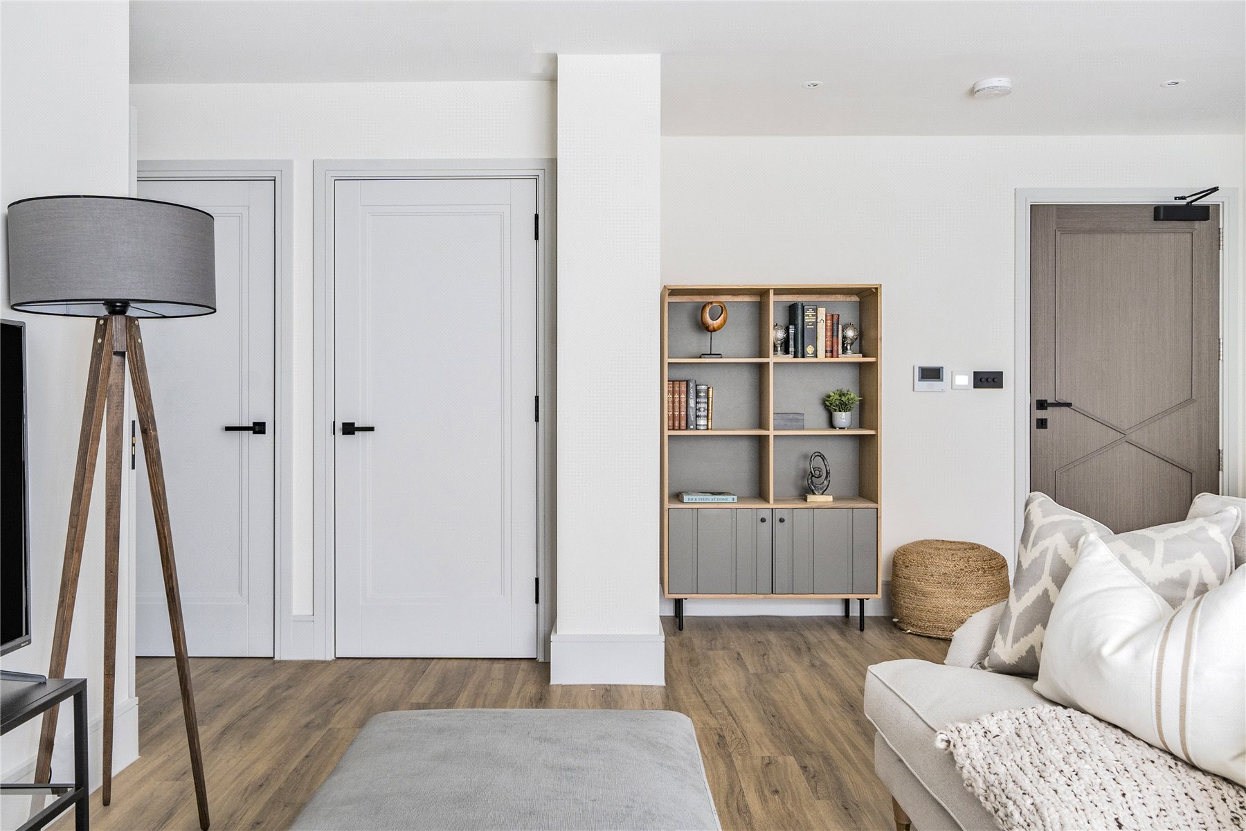 - Stylish matt black socket and switch plates and contemporary door furniture