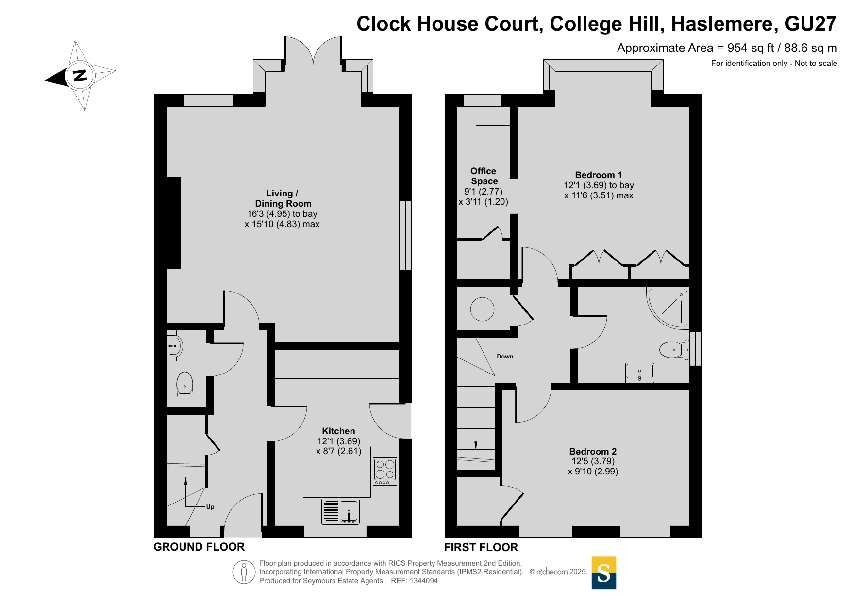 Upstairs, the property offers two generous double bedrooms, with the principal bedroom benefitting from a bay window overlooking the gardens and fitted storage. A well-designed office space provides the perfect solution for home working, complemented by a neatly arranged family bathroom.