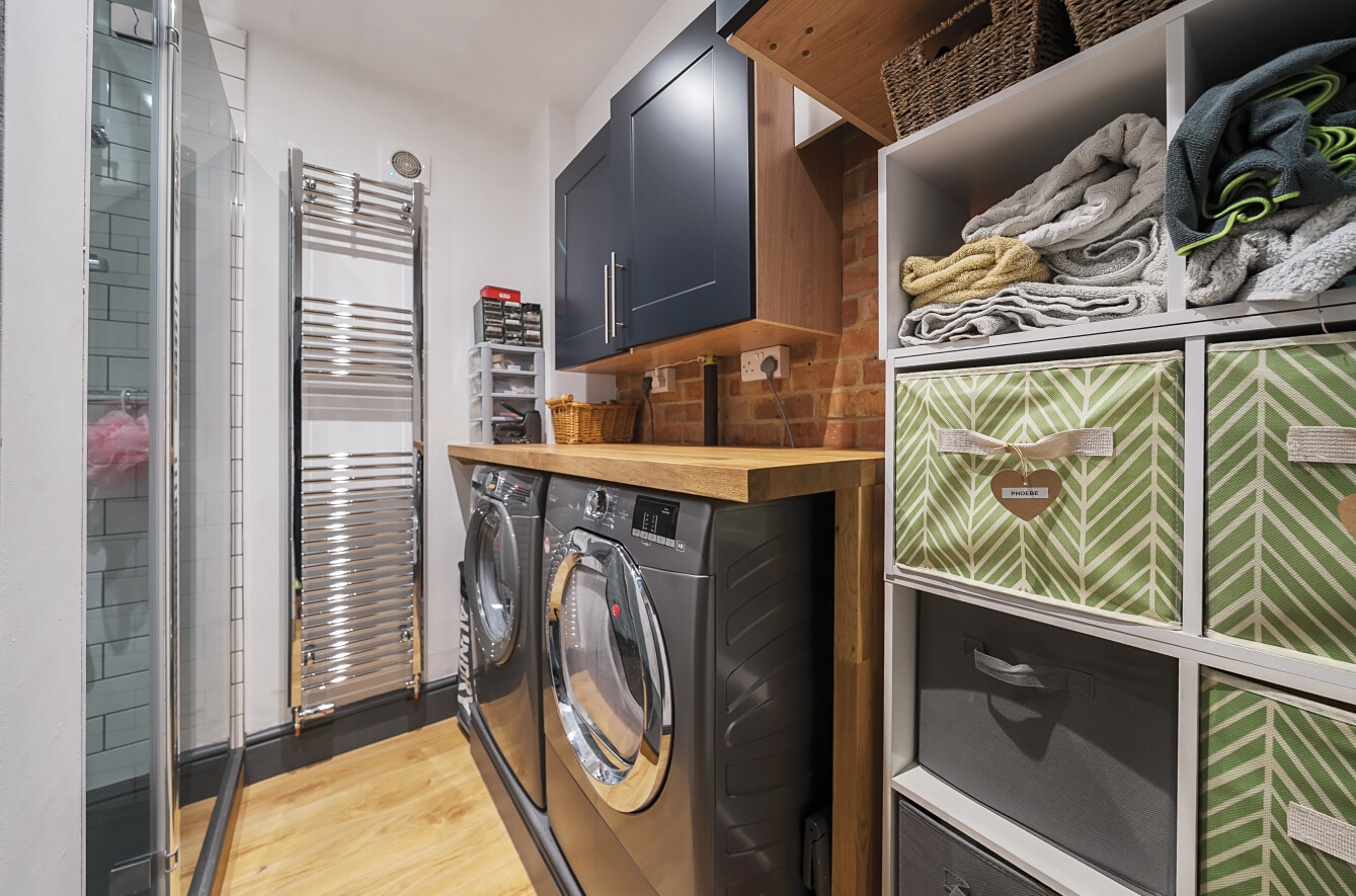 The ground floor also offers practicality with a utility room that includes a shower, as well as a separate WC for added convenience.