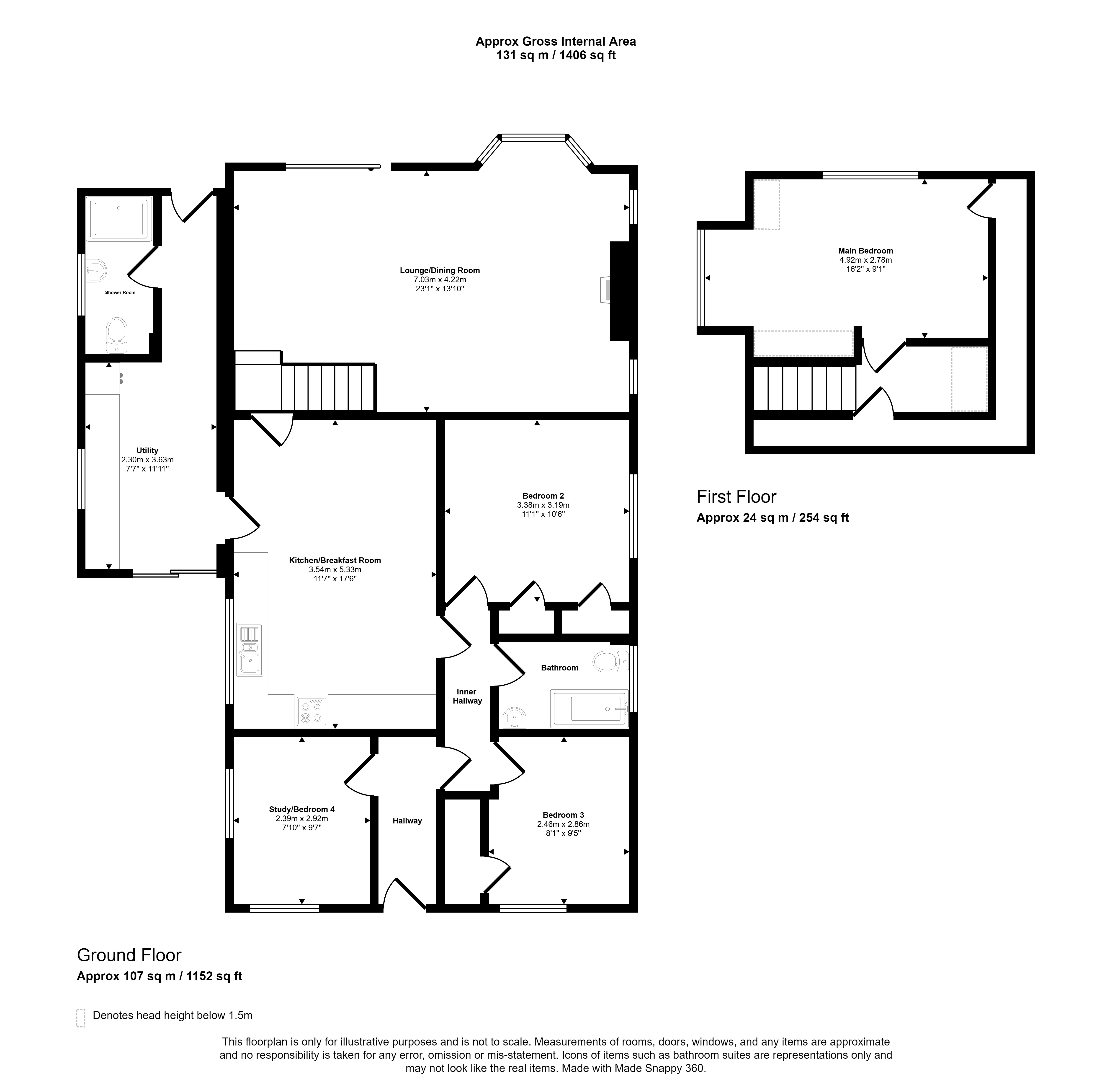 A 17'6 Kitchen/Breakfast Room offers a good range of wood fronted wall & base units and a doorway leads to a large Utility/Boot Room which has doors to the front and rear as well as leading to a Shower Room.