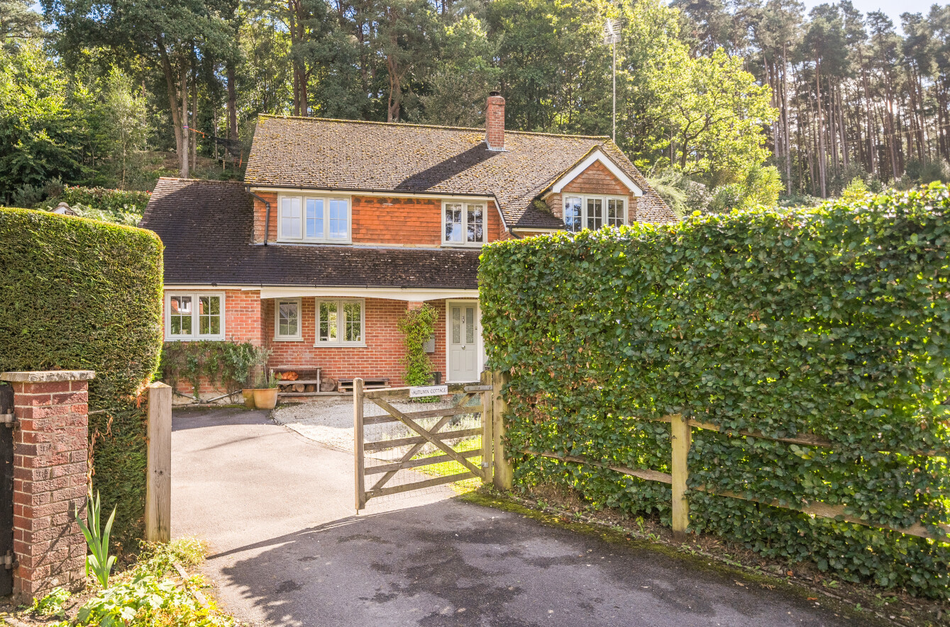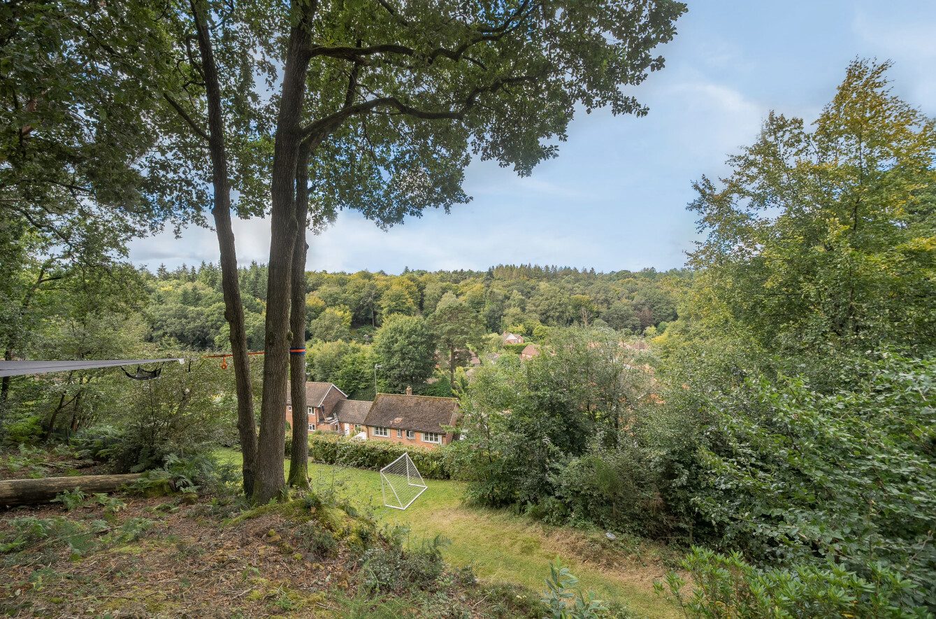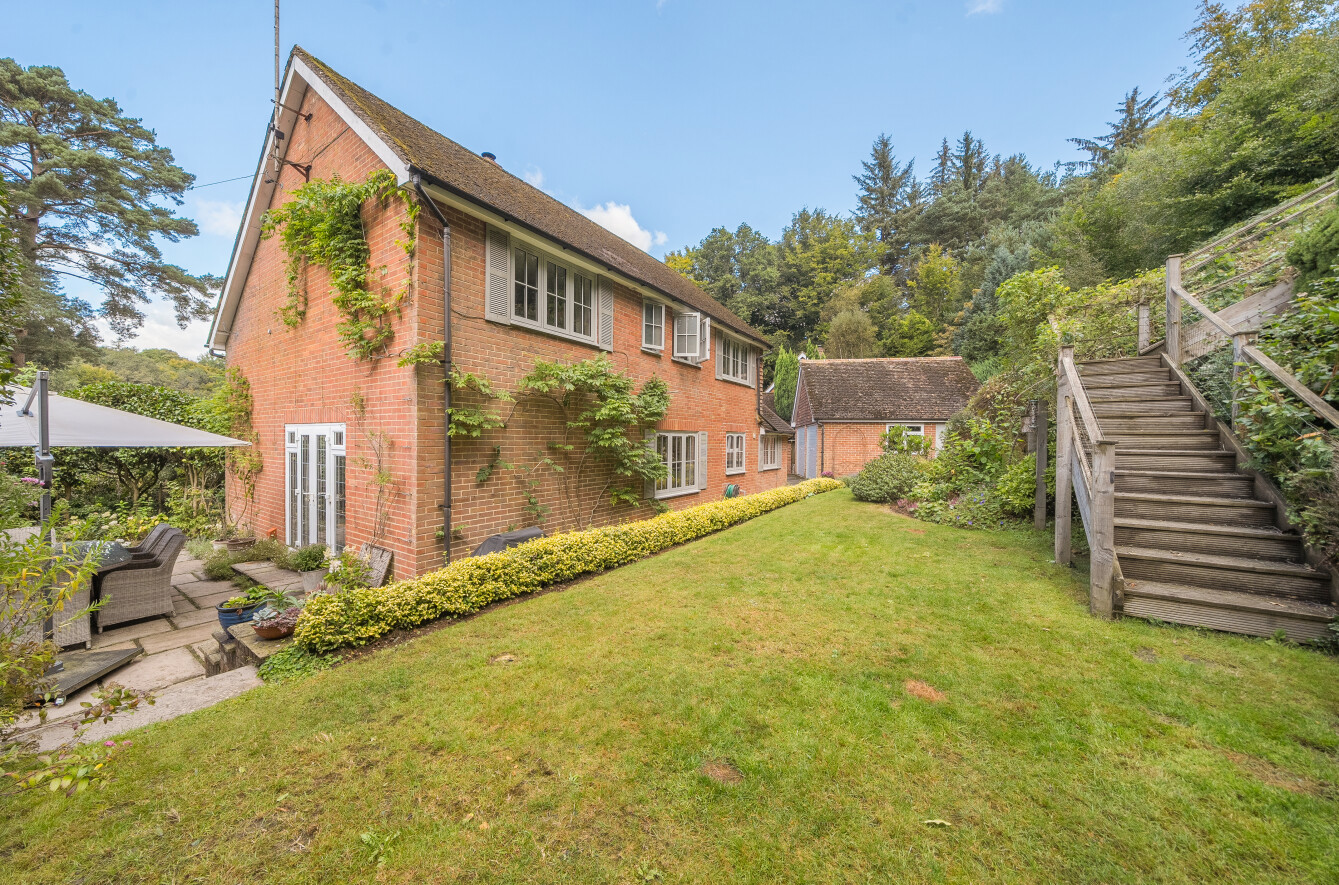 Tucked away on a quiet, no-through road in the highly sought-after Camelsdale area, this exceptional four-bedroom detached family home offers a rare opportunity to embrace countryside living while being within easy reach of modern amenities. Set back from the road behind a picturesque post-and-rail fence, mature beech hedging, and a gated driveway, this property exudes privacy and charm. The home sits on an elevated plot with approximately 1.5 acres of beautifully landscaped gardens and private woodland, making it an idyllic retreat for families who value space, tranquillity, and outdoor living.