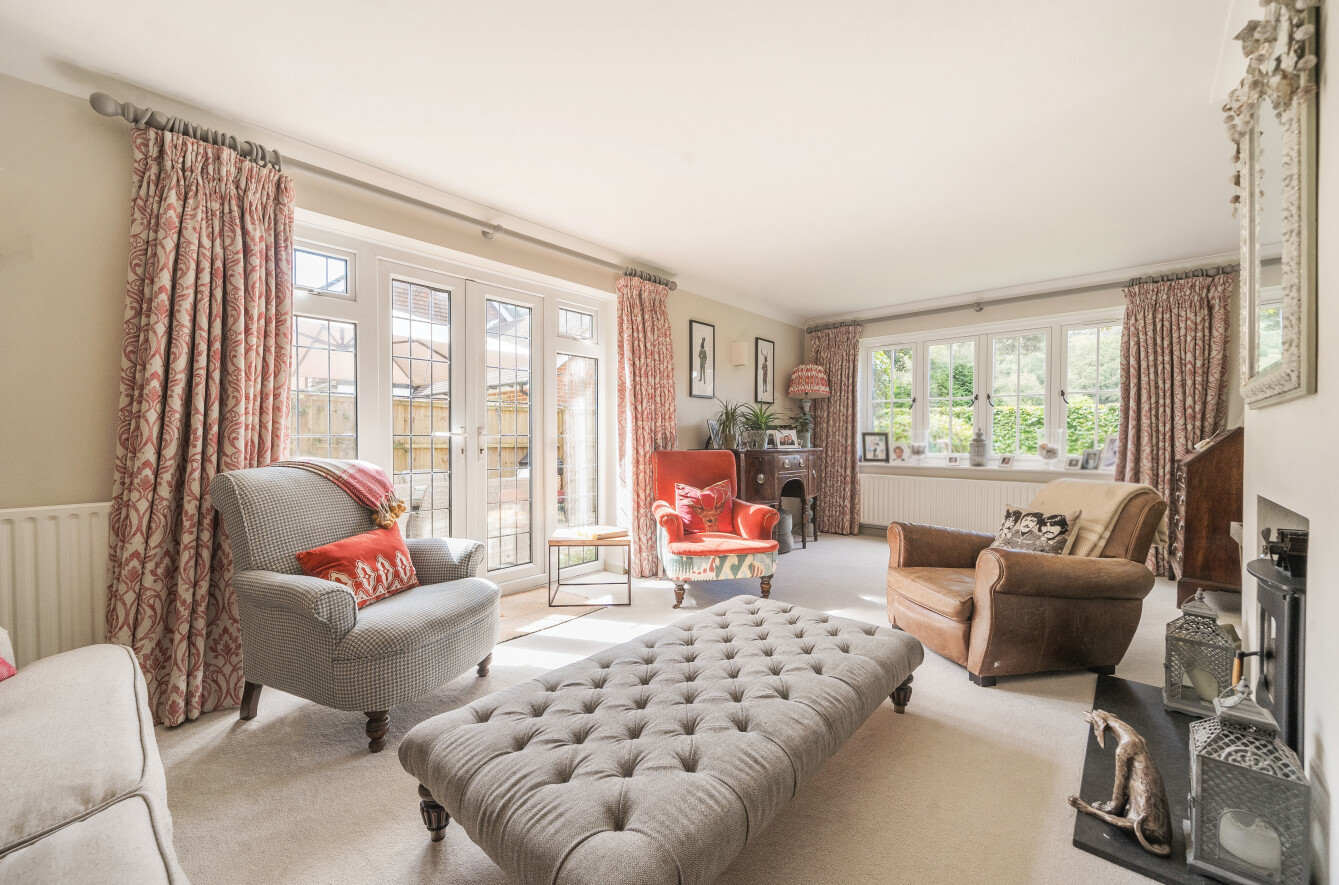 From the moment you step through the covered porch into the welcoming entrance hall, the home impresses with its light and airy atmosphere, offering flexible and versatile living spaces designed to meet the needs of modern family life. The ground floor features a spacious sitting room, perfect for cozy evenings by the wood-burning stove. The French doors in this room lead directly out to the garden, seamlessly blending indoor and outdoor living. A further separate reception room offers multiple possibilitiesit could serve as a family room, formal dining room, or even a home office, providing excellent versatility depending on your needs.