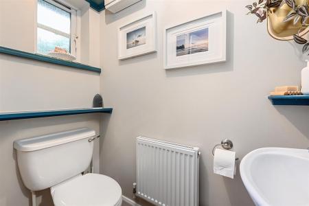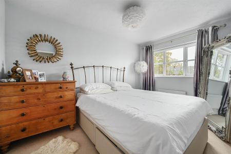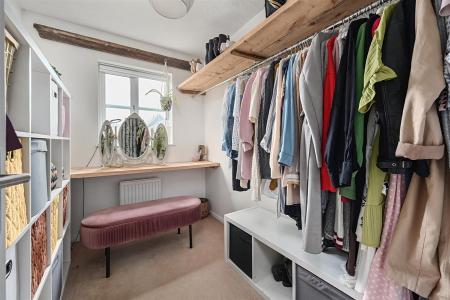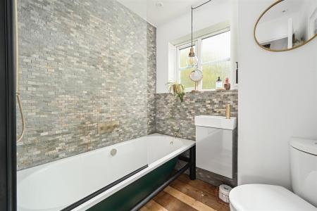 Conveniently on the first floor there are three bedrooms, the main two are considered good sized doubles whilst the third is currently being utilised as a walk-in-wardrobe and dressing area. The Bathroom is finished in a neat tile splash back, complimenting the white matching sanitary-ware against the black bath-frame and brushed-brass fitments.