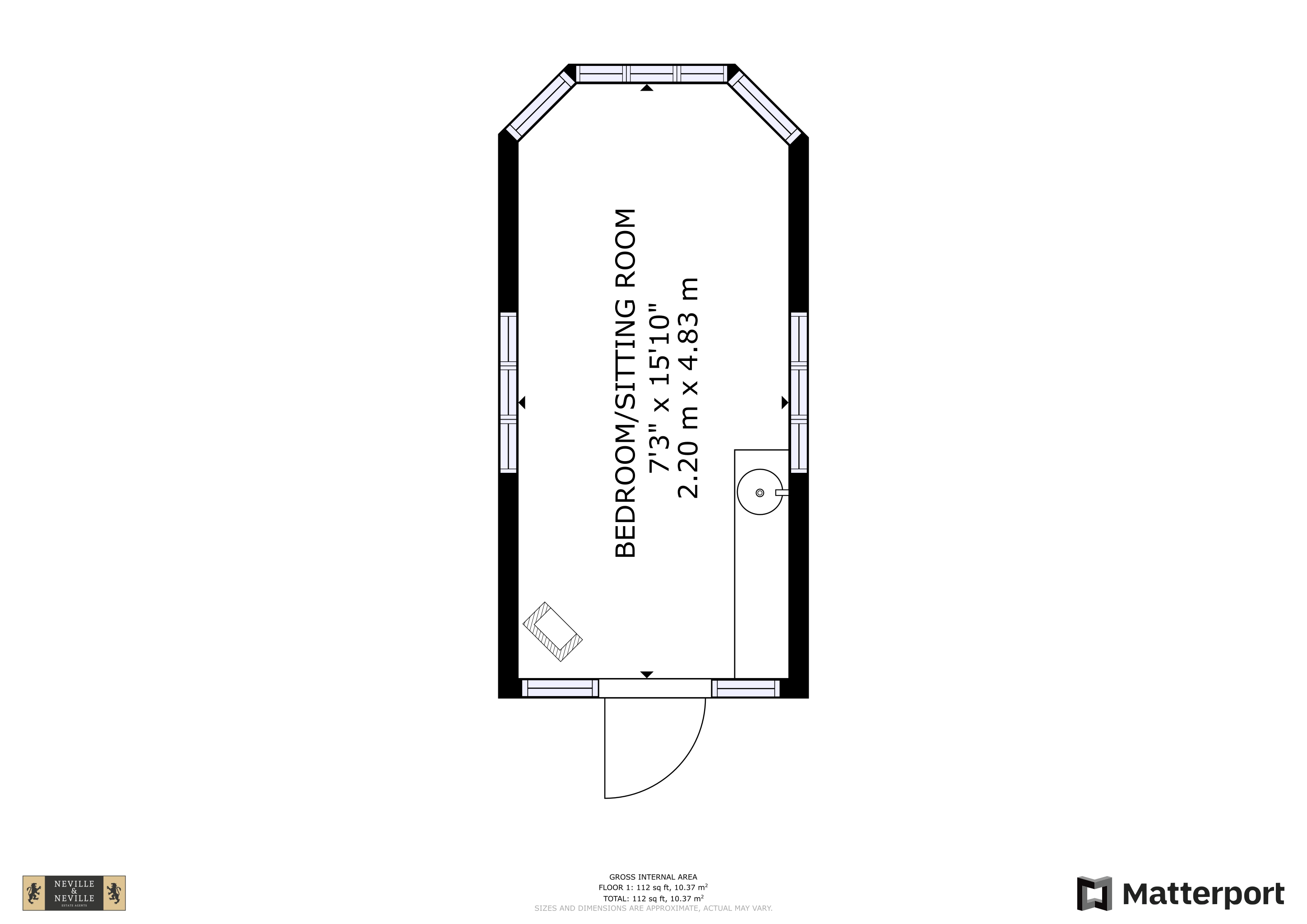 Currently arranged with a feature metal bedframe and rustic shelving, the space offers ample room for freestanding furniture and lends itself well to use as a guest bedroom, teenager’s retreat, or even a home office. A characterful yet calming room with clear versatility.