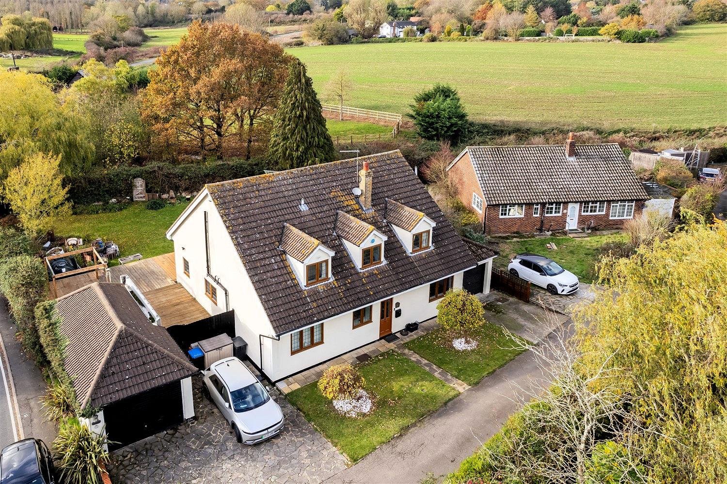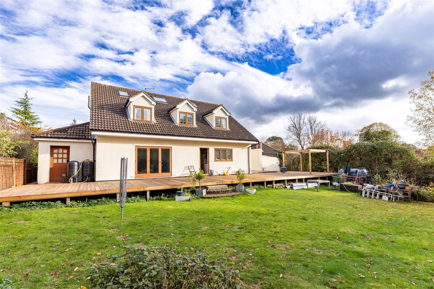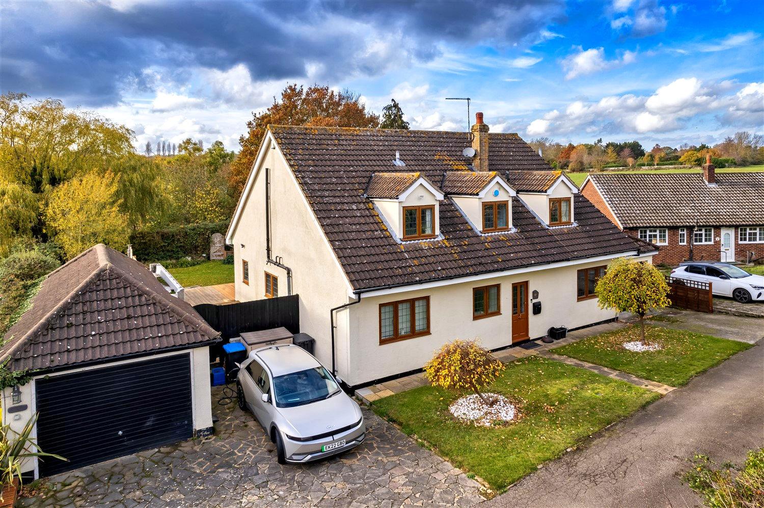The exterior of the property is equally impressive, with a lawned front garden adorned with feature trees & two driveways leading to two garages, offering parking for up to five vehicles. The rear garden is a true oasis, featuring an extensive raised decking area with a wooden pergola, perfect for alfresco dining & entertaining. The lush lawn, bordered by shrubs & hedges, includes a delightful feature pond with a waterfall, enhancing the tranquil setting. Situated in a small cul-de-sac & surrounded by open countryside, this property is offered chain free, making it an excellent opportunity for those looking to settle in a peaceful yet accessible location.