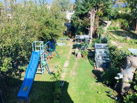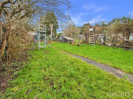 Mainly laid to lawn with perimeter fencing and gated side access.