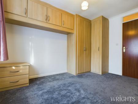 The bedroom has a view out on to the communal garden and is a generous double bedroom with fitted wardrobe units and matching bed side draw units.