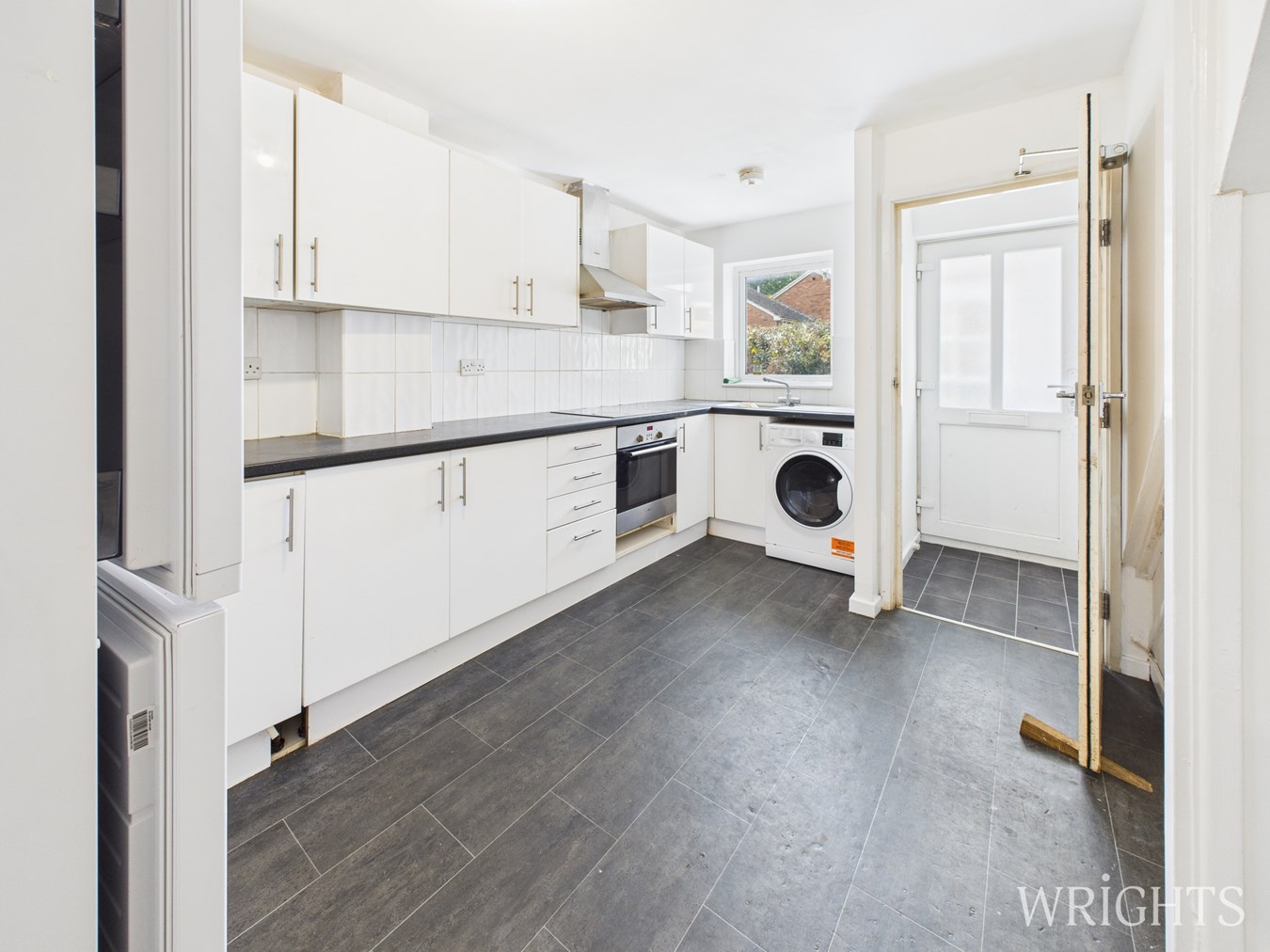 3.60m x 4.30m (11' 10" x 14' 1") Front aspect double glazed window. Range of matching wall and base units with worktops over incorporating stainless steel sink unit with mixer taps, electric oven and hob with extractor over. Space for appliances, space and plumbing for automatic washing machine.