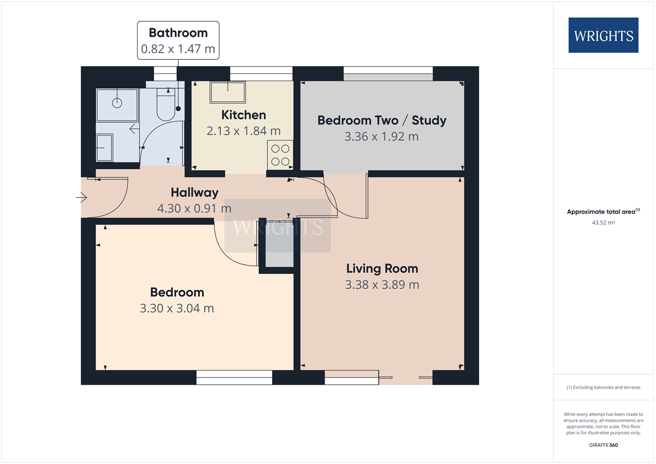 The main entrance leads into a comfortable hallway that provides access to all of the apartment’s accommodation. The lounge/diner is a comfortable space and benefits from plenty of natural light via French Doors leading out to the private garden. Off of the lounge is bedroom two/study.