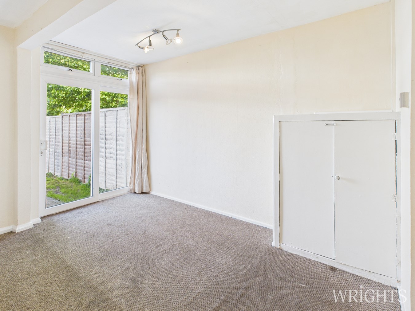 9' 0" x 12' 1" (2.74m x 3.68m) Double glazed patio doors, meter cupboard, fitted radiator, door to first reception.