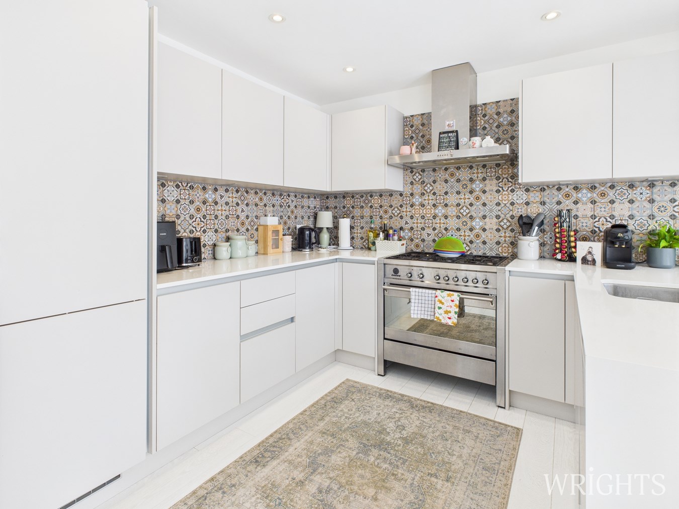 14' 9" x 21' 11" (4.50m x 6.68m) Bi-Folding doors to rear garden. Skylight windows to dining area, range of matching wall and base units with work surfaces over incorporating stainless steel sink unit. Space for appliances, integrated fridge and dishwasher, cupboard housing automatic washing machine, laminate wood flooring, fitted radiator.