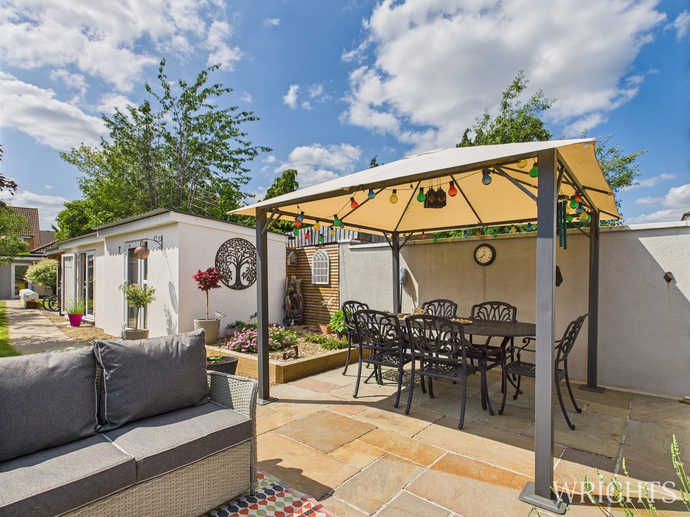 Attractive well maintained rear garden benefitting from paved patio area for entertaining, lawned area with pathway leading to outbuildings perimeter fencing, gated side access. Purpose built office with power and lighting, secure storage shed plus additional covered storage. Path leading to:
