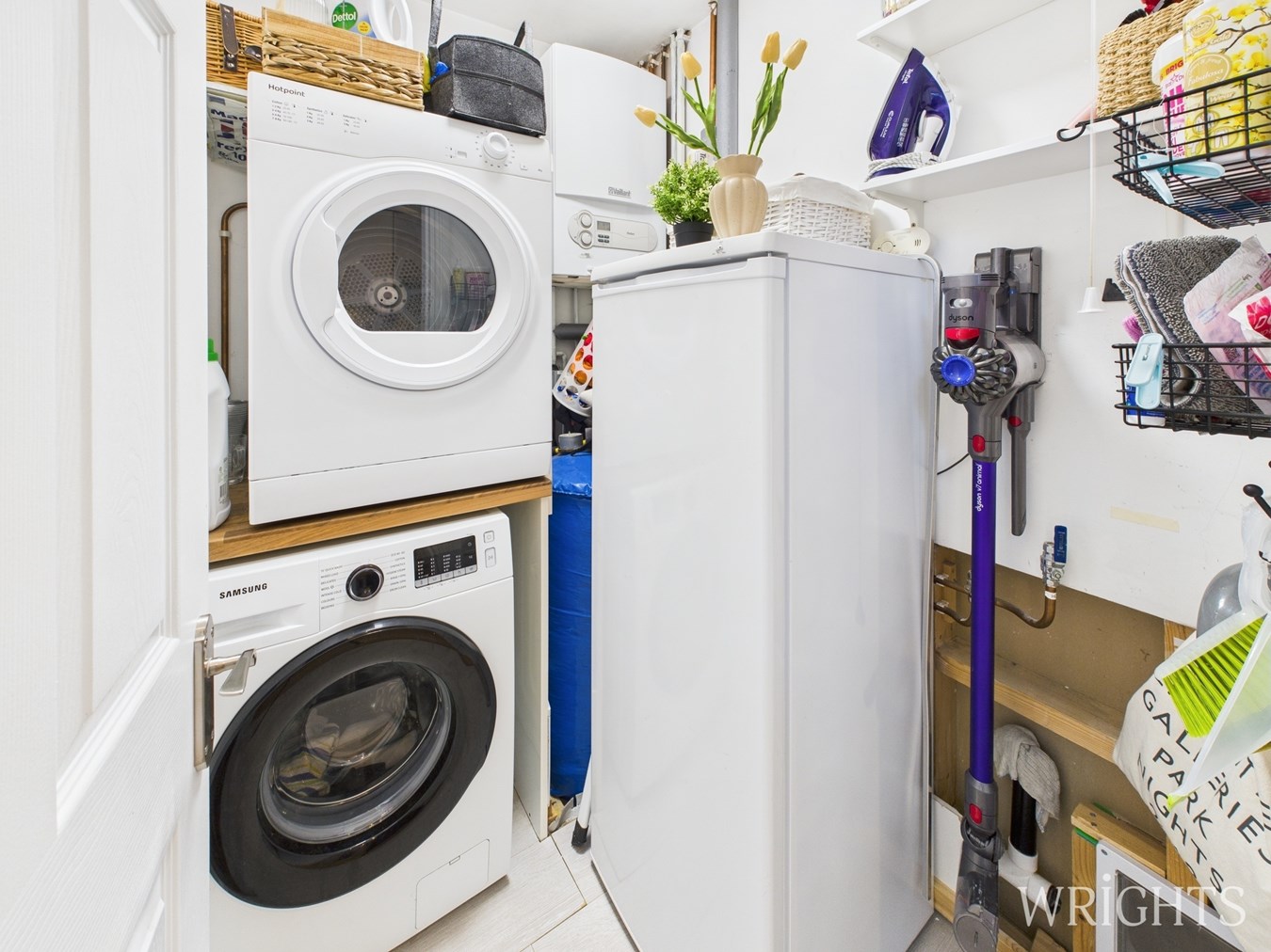 1.40m x 1.76m (4' 7" x 5' 9") Situated off the kitchen is a good space for kitchen appliances, currently houses a fridge freezer, washing machine and tumble dryer.