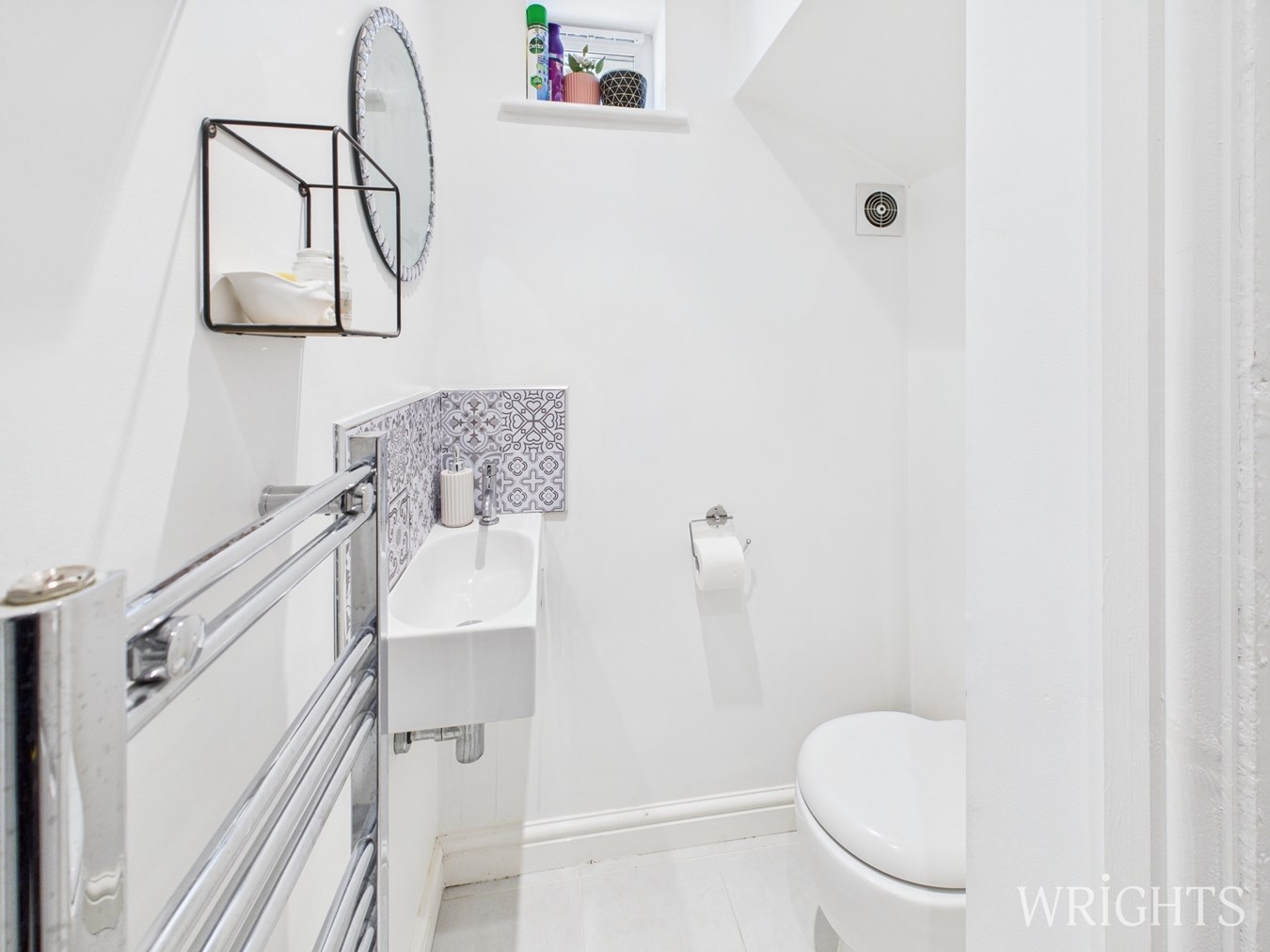 0.74m x 1.72m (2' 5" x 5' 8") An L-shaped ground floor space with low level W/C, hand wash basin and heated towel rail.