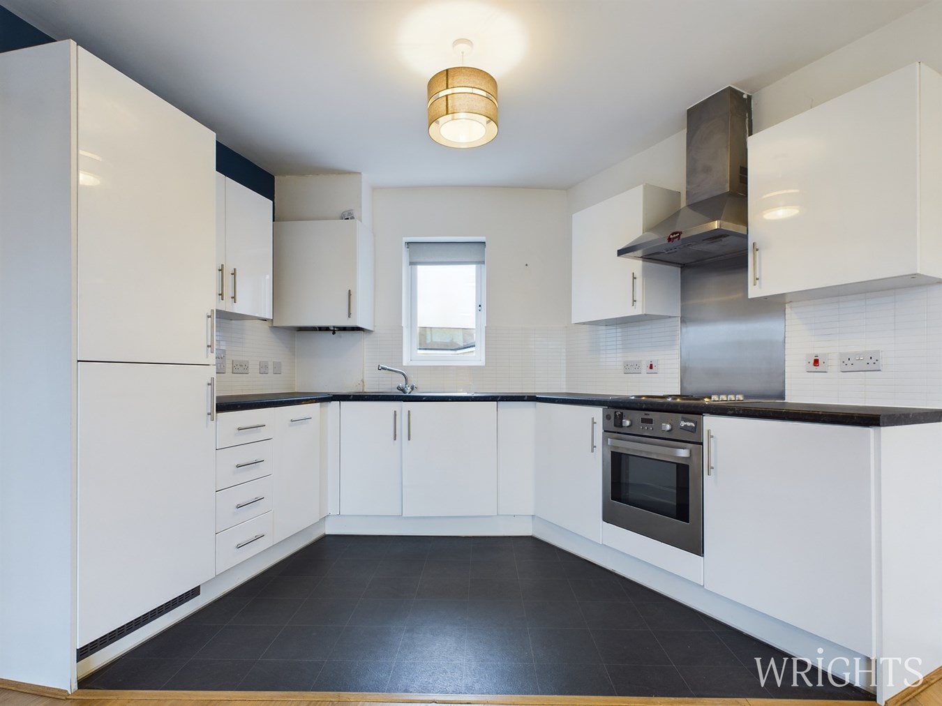 The accommodation comprises of a spacious entrance hall providing ample storage via two large cupboards. The dual aspect open plan living room/kitchen benefits from plenty of natural light and can be configured in multiple configurations. The fitted kitchen consists of matching base and wall units with a tiled backsplash. Integrated items include an electric oven and hob, fridge freezer, washing machine and dishwasher.