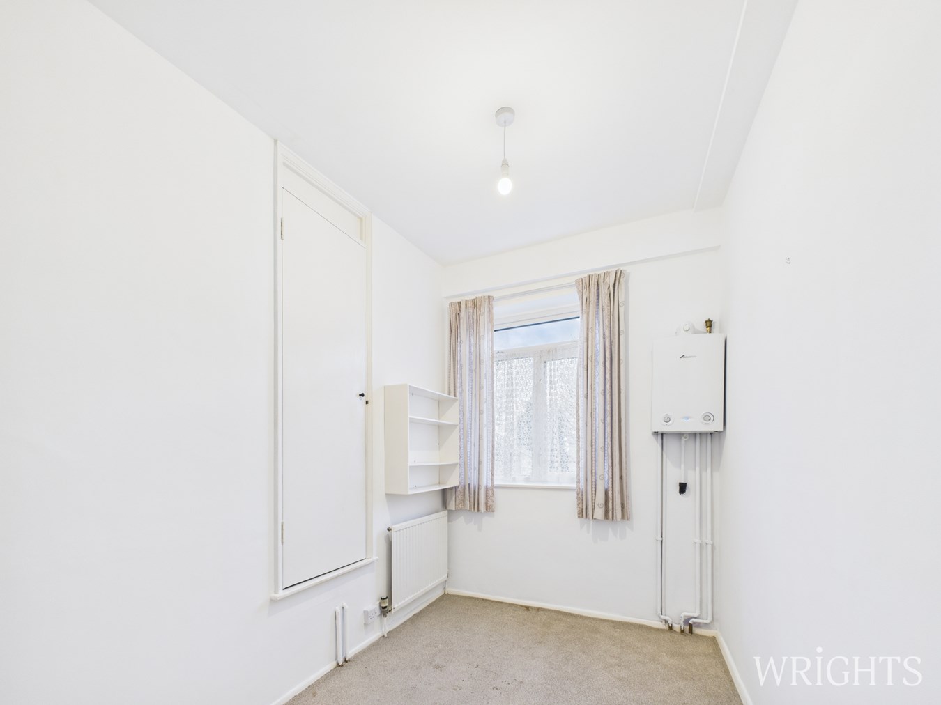 2.07m x 3.67m (6' 9" x 12' 0") Single bedroom with built in cupboard, carpet flooring, gas radiator and double glazed window to the front aspect.