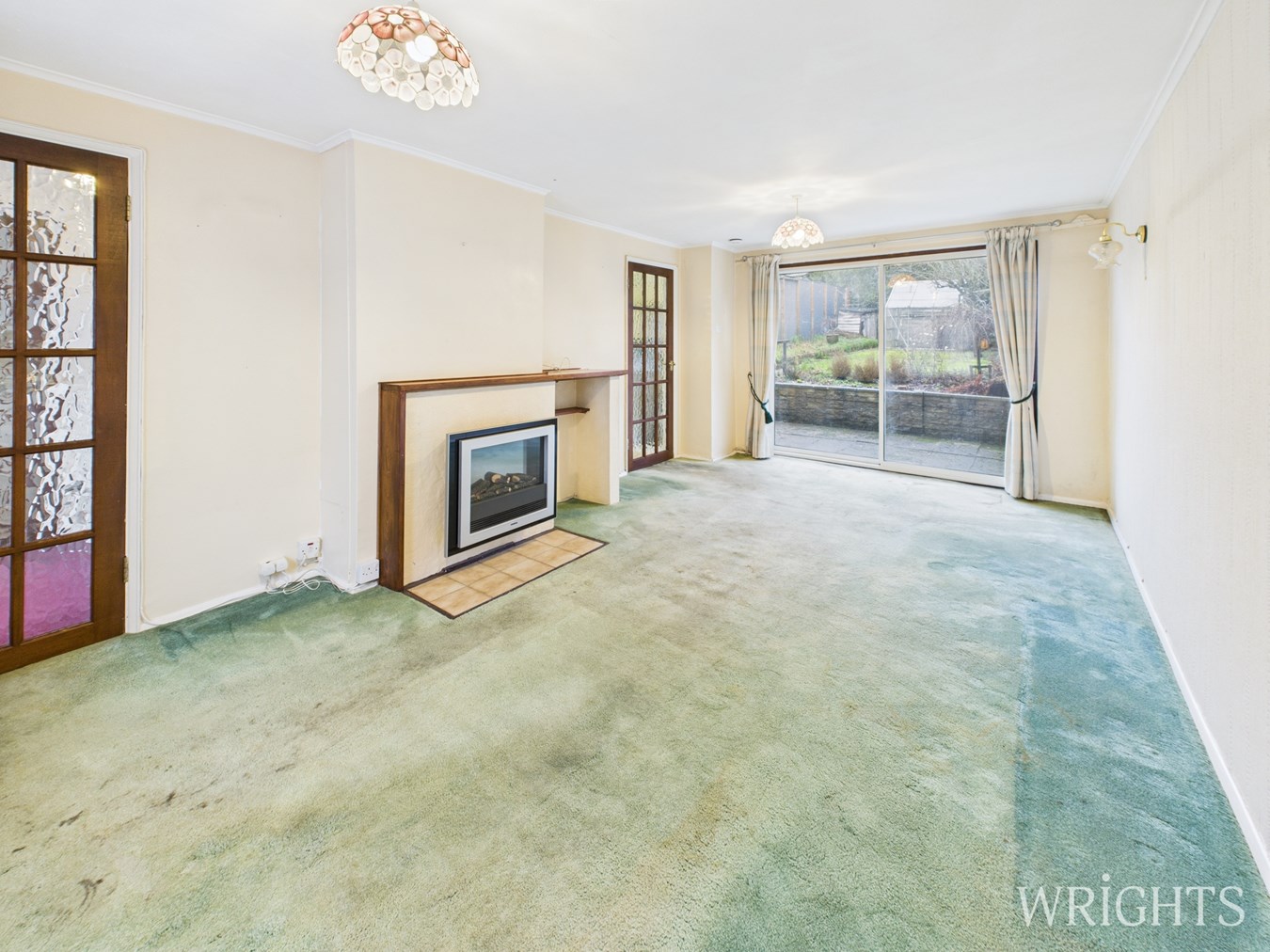 3.37m x 5.64m (11' 1" x 18' 6") Dual aspect living space with double glazed window to the front and sliding doors to the rear. Carpet flooring, gas radiator and feature electric fireplace.