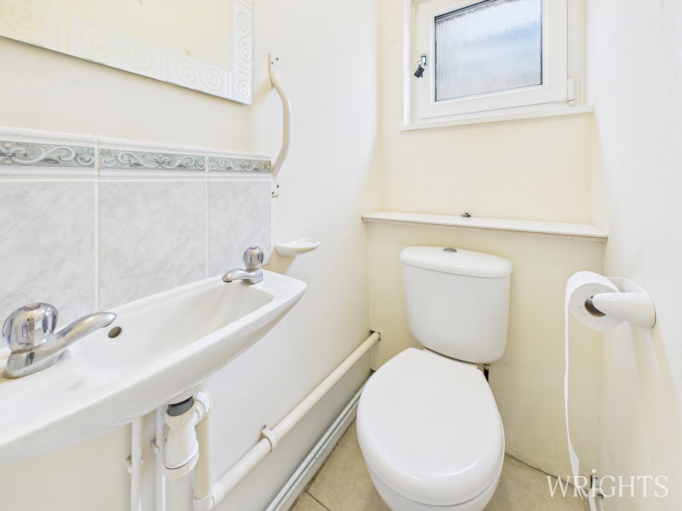 0.84m x 1.69m (2' 9" x 5' 7") Low level W/C, hand wash basin and frosted double glazed window.