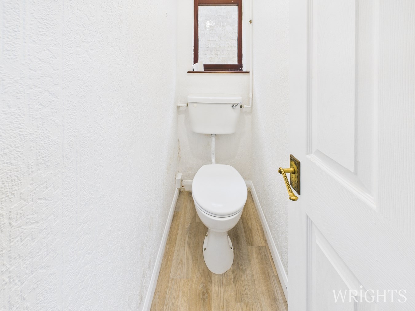 0.75m x 1.73m (2' 6" x 5' 8") Low level W/C with frosted double glazed window.