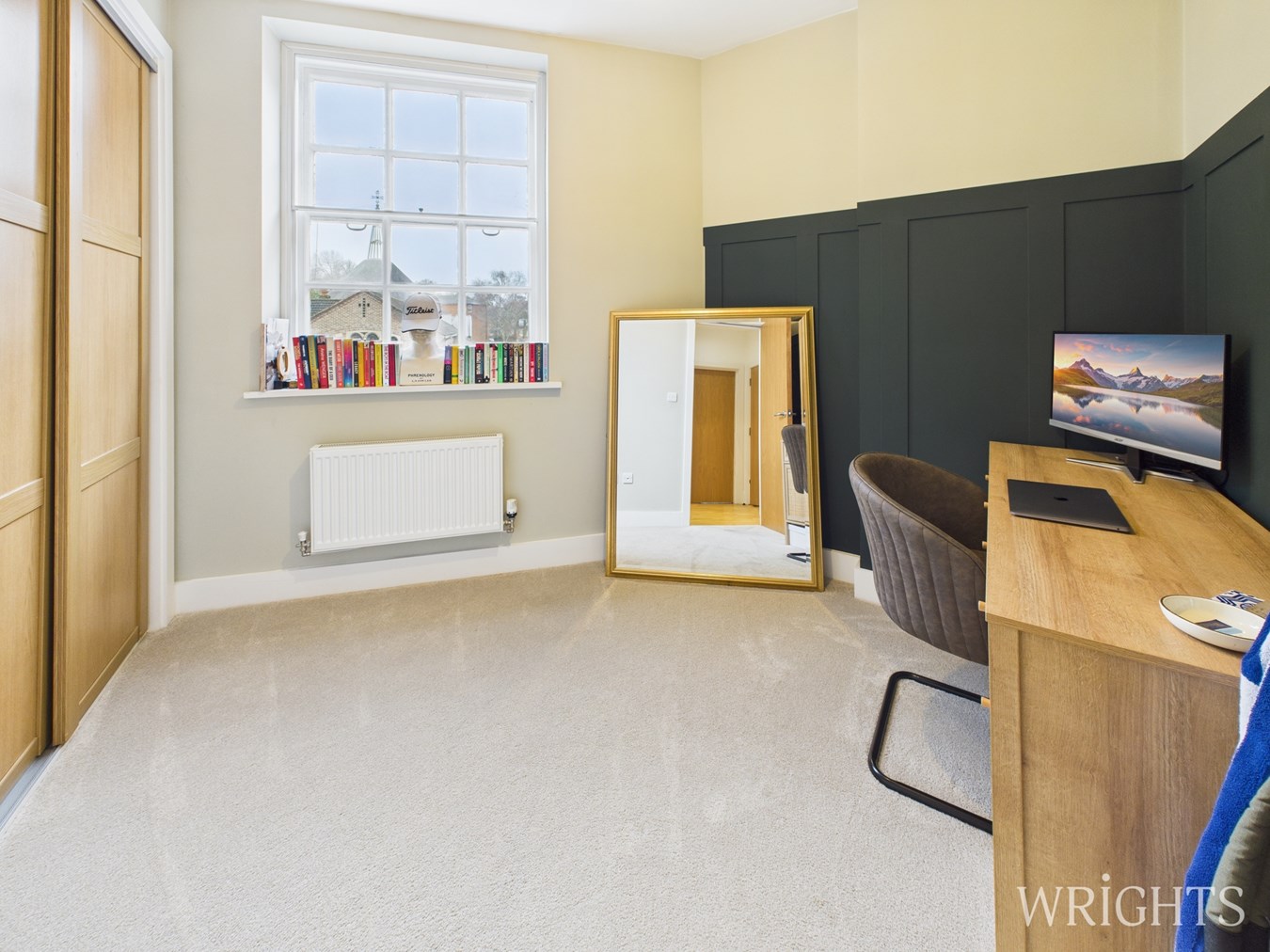 2.47m x 3.38m (8' 1" x 11' 1") Secondary glazed sash window, fitted radiator, built in wardrobe, newly fitted carpet flooring.