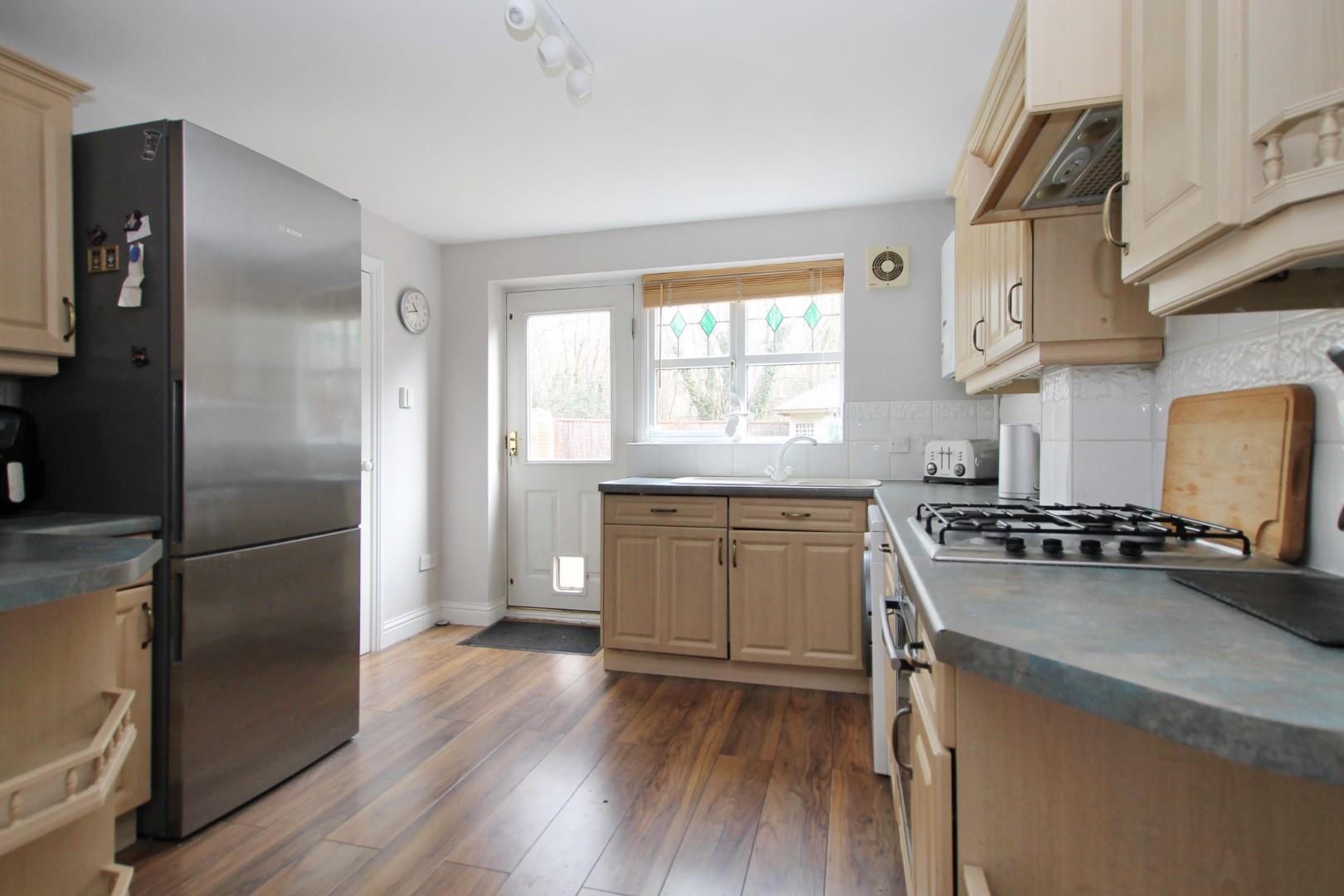 Upon approach to the property, a small pathway leads up via driveway and mature frontage to the front door. Once inside, this charming property offers a perfect blend of spacious living and thoughtful design. The heart of the home features a bright and welcoming lounge, which flows effortlessly into the dining area, offering a comfortable space for everyday living. The well-maintained rear garden is easily accessible from the dining area via sliding doors, providing a peaceful outdoor retreat that is perfect for relaxing or hosting gatherings. The kitchen is well equipped, offering a wealth of practical worksurface space and an abundance of light wood cabinetry storage. Integrated cooking appliances are considerately positioned with additional space for freestanding fridge freezer and utilities. There is also secure internal access into the garage from the kitchen and a practical washroom completes the ground floor.