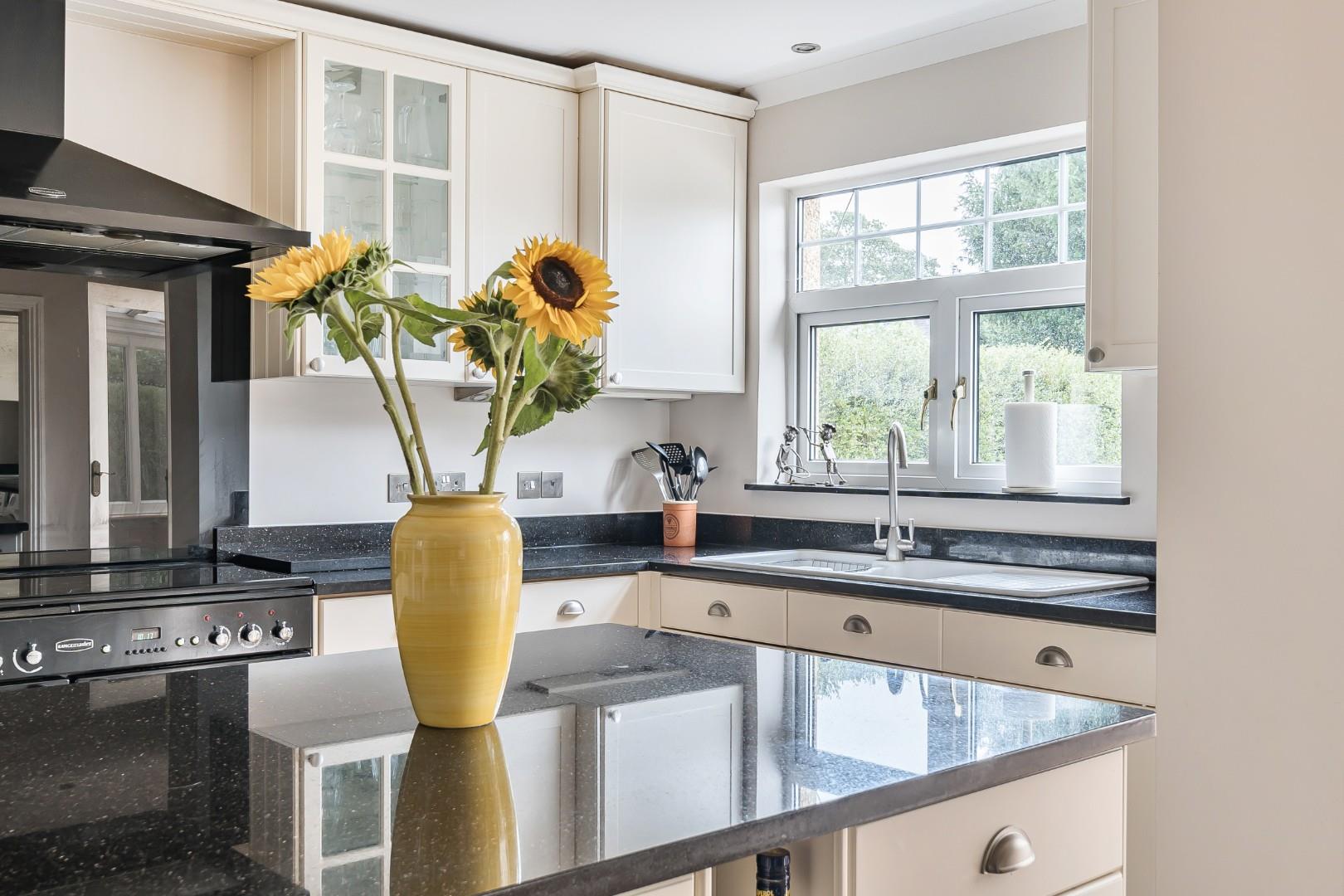 Upstairs, four spacious double bedrooms are all beautifully decorated to offer both comfort and tranquillity, providing an abundance of storage and charming aspects of the surrounding plot. These bedrooms are well-serviced by two bathrooms, ensuring convenience for family living and busy life dynamics.