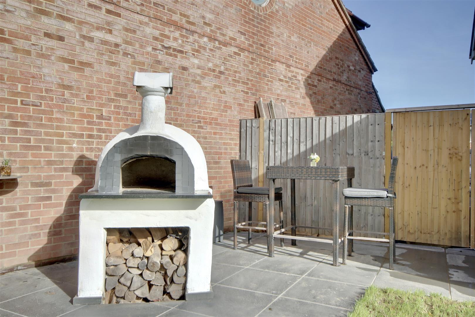 The garden is an amazing size with a modern porcelain paved patio, which leads down to a huge lawn area. The is also an additional dining area, which includes wood fired pizza oven!