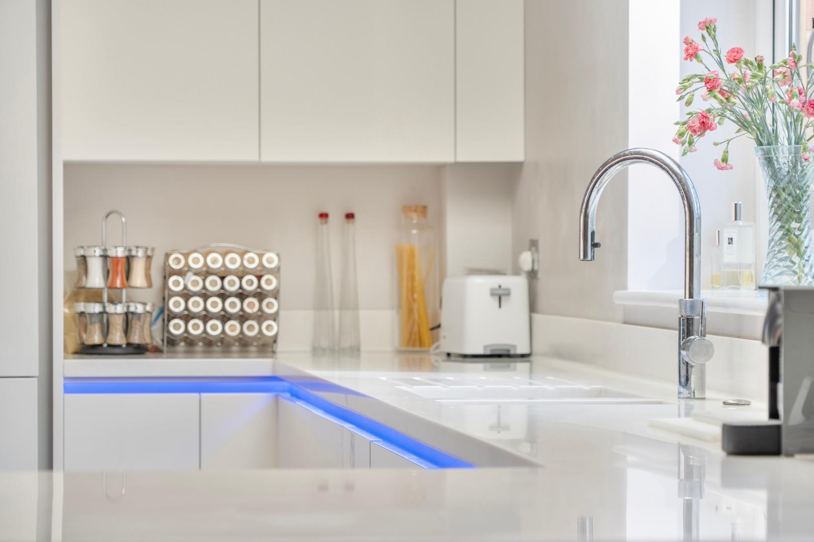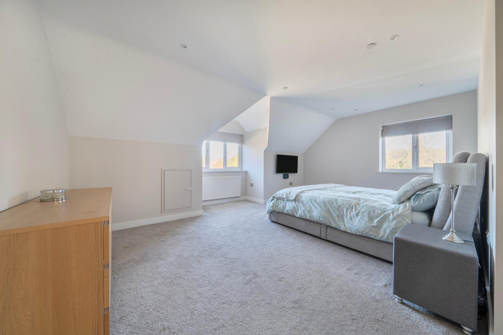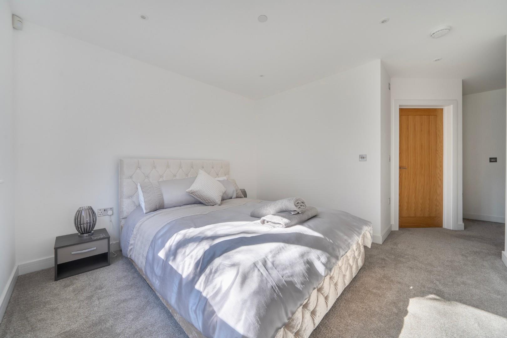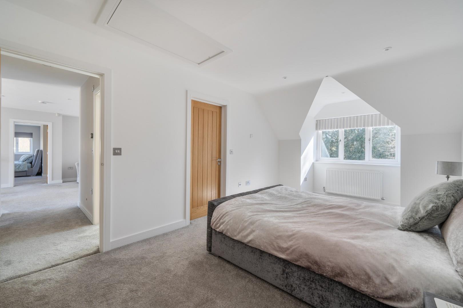 Venturing upstairs, you will find a generously sized master bedroom complete with a built-in dressing area and a luxurious four-piece en-suite bathroom featuring a double vanity unit. The landing leads to a secondary lounge area, which is flooded with light from dual aspect windows overlooking the front and back gardens. Bedroom two is another spacious double with access to the four-piece en-suite/family bathroom, while bedroom three also benefits from fitted wardrobes.