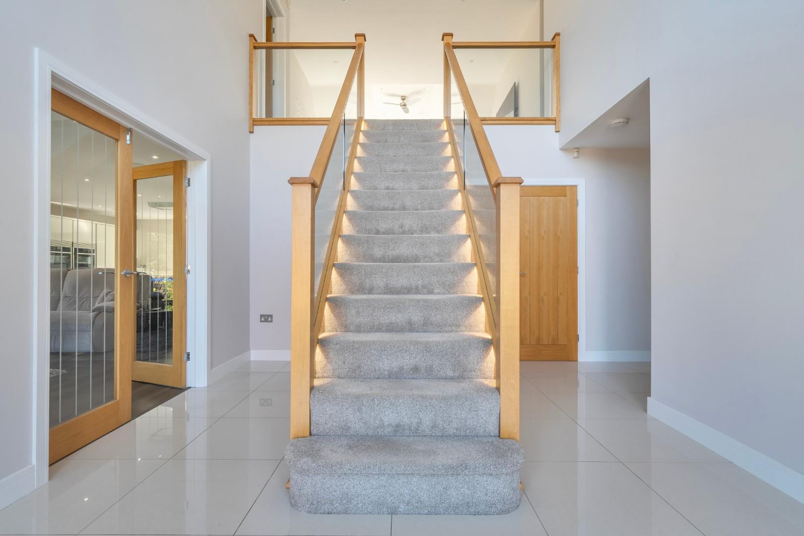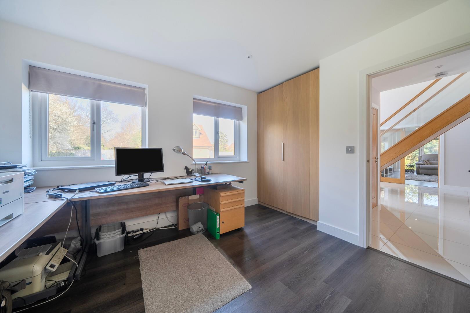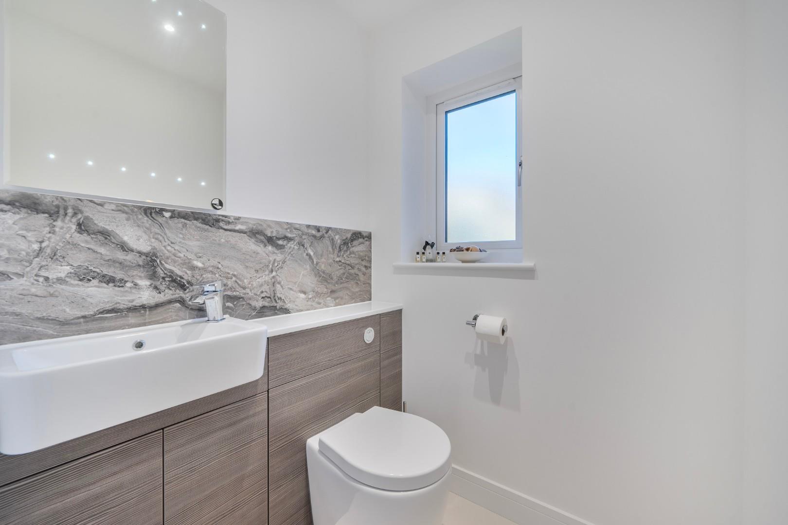 The ground floor also includes a convenient downstairs cloakroom and an office. The downstairs bedroom is thoughtfully designed with its own en-suite bathroom and fitted wardrobes, providing privacy and comfort. Additionally, a utility room enhances the practicality of this well-appointed home.