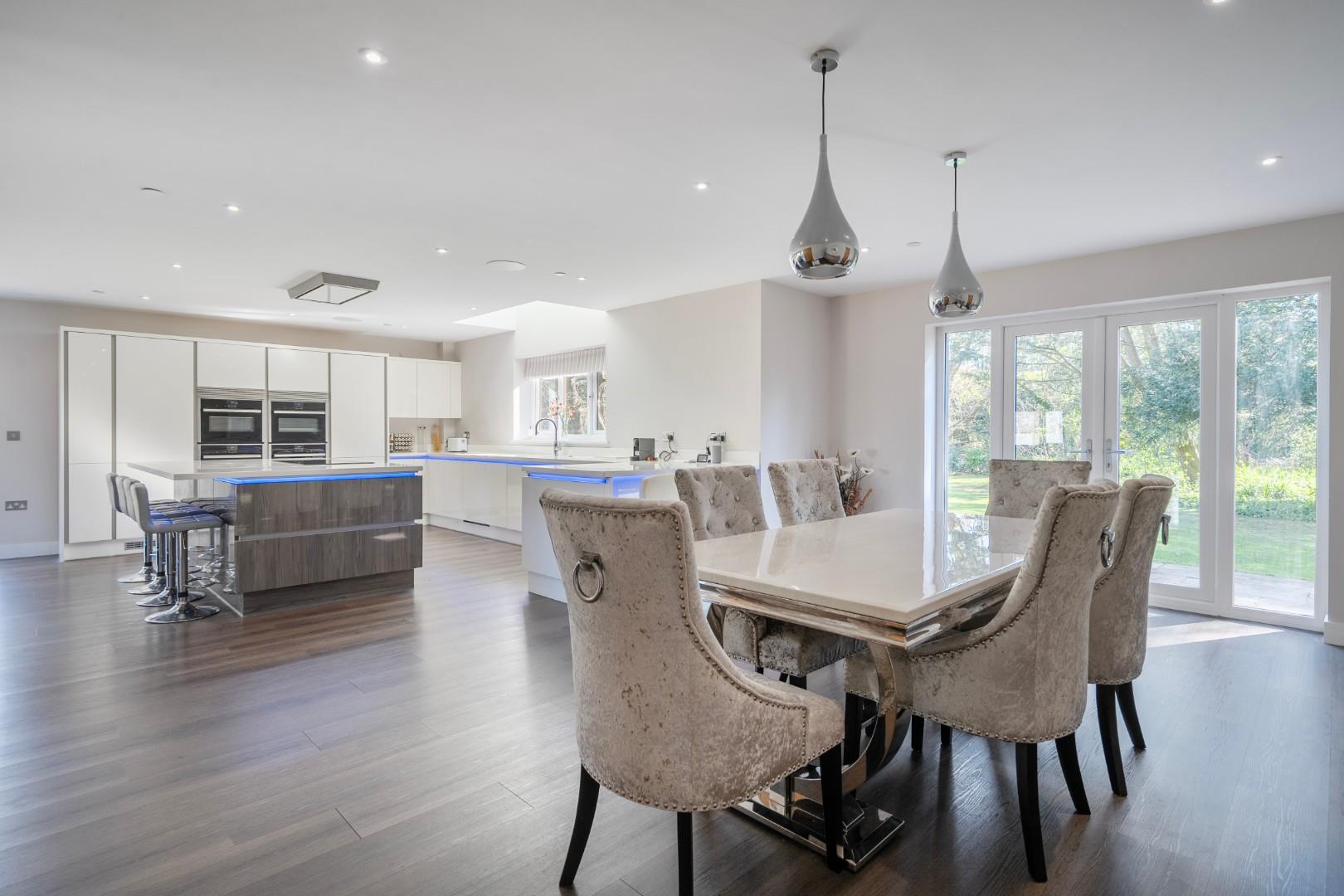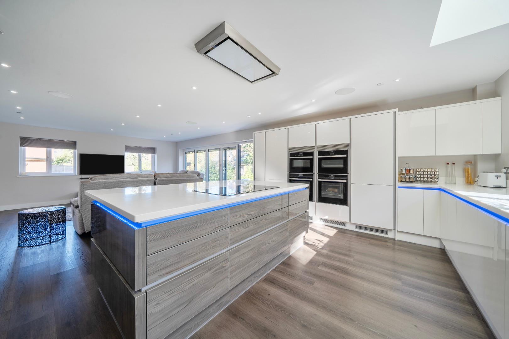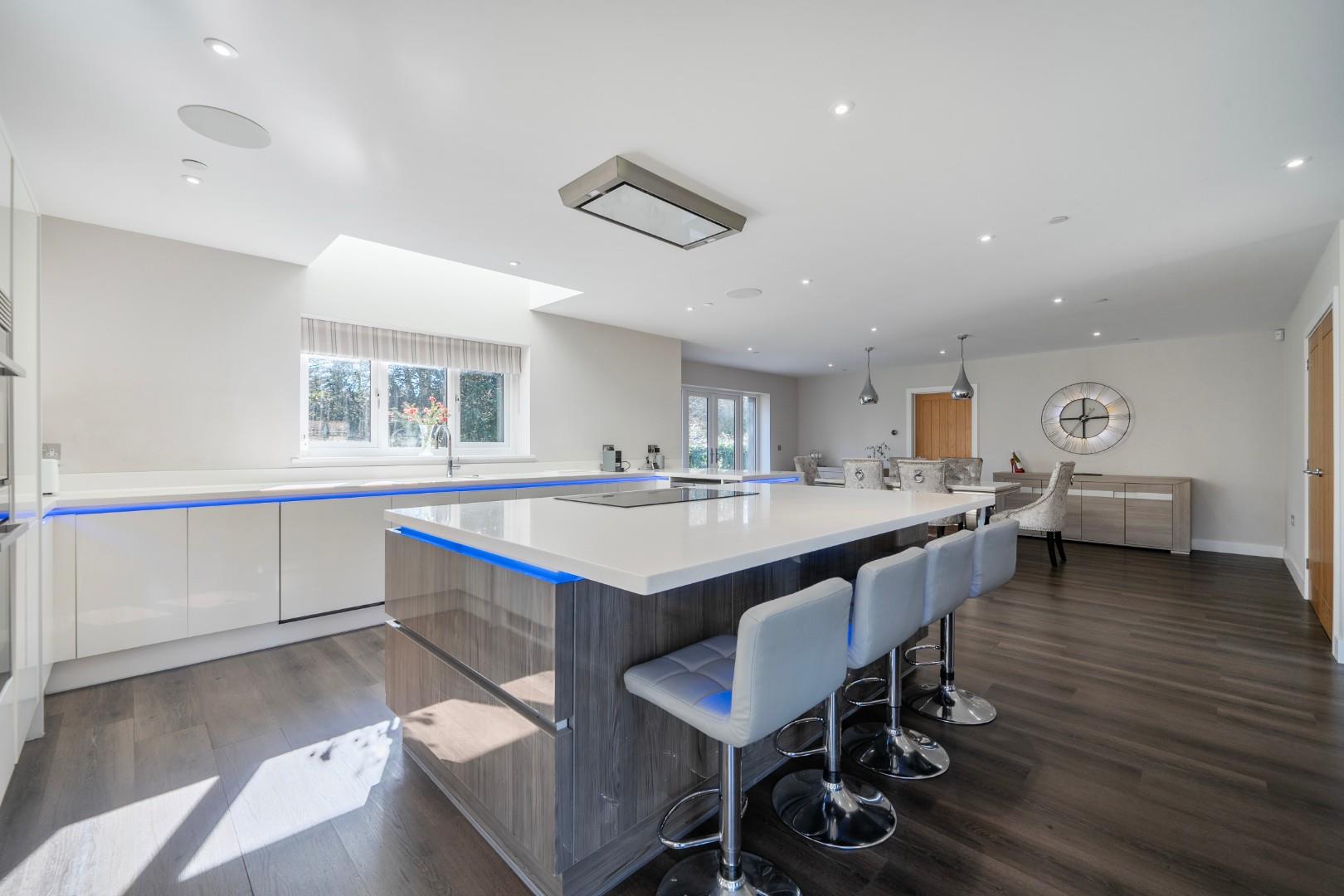 As you approach the property via a private road, you are greeted by a stunning entrance hallway that is bathed in natural light. The ground floor boasts underfloor heating throughout, ensuring a warm and inviting atmosphere. The heart of the home is undoubtedly the expansive open-plan kitchen and dining area, measuring approximately 30x30ft. This impressive space features a stylish kitchen with an island and bi-fold doors that seamlessly connect to the outdoor area, making it perfect for entertaining guests.