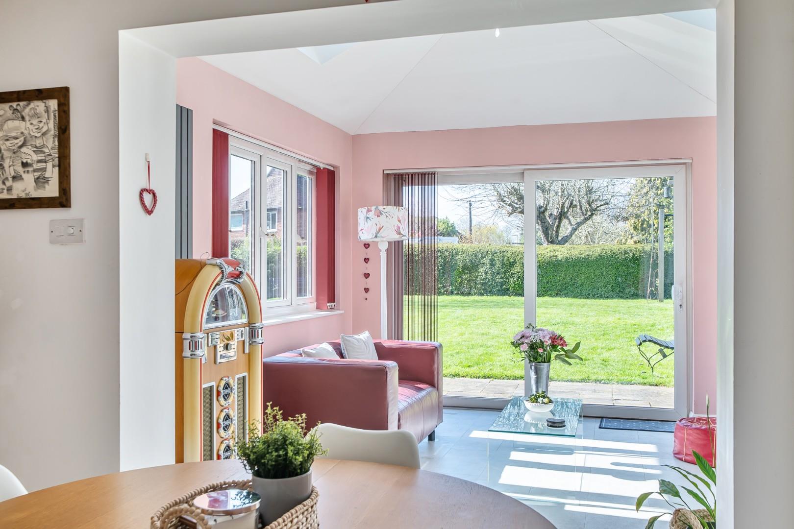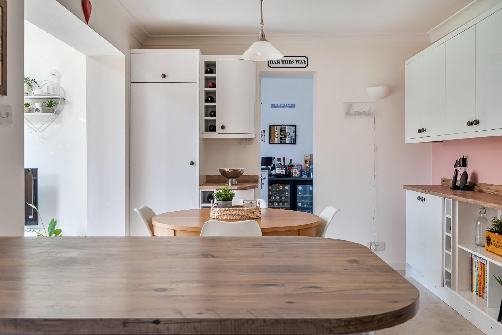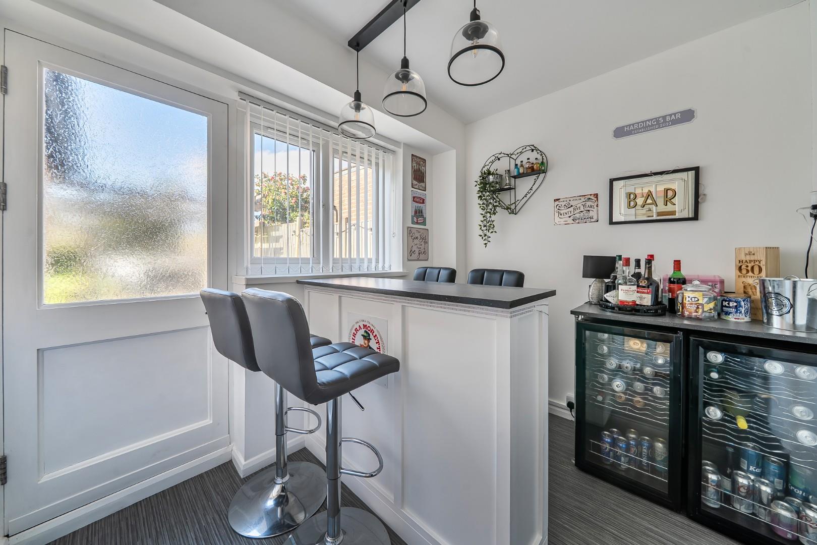As you continue down the hallway, you will discover the open kitchen diner, a fantastic space featuring a C-shaped kitchen that provides ample work surface and a convenient breakfast bar. This area seamlessly connects to a bar that doubles as a study room or office, perfect for those who work from home. Adjacent to the kitchen, the sun room offers a lovely relaxation area with views of the garden, making it a perfect spot to unwind.