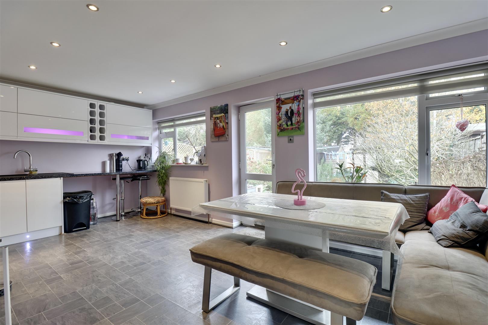 Upon entering, you are welcomed into an expansive lounge that provides a warm and inviting space, ideal for both relaxation and entertaining. The lounge seamlessly flows into a large, extended rear wrap-around kitchen, which features an open-plan dining area, perfect for family meals and gatherings. The kitchen is designed to be both functional and stylish, making it a wonderful space for culinary creativity.