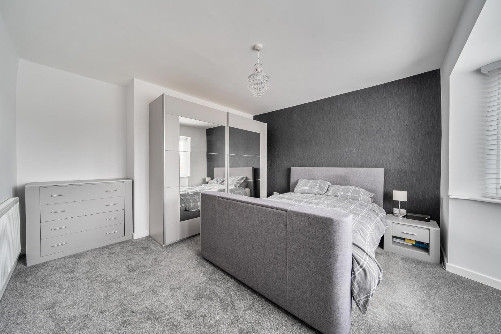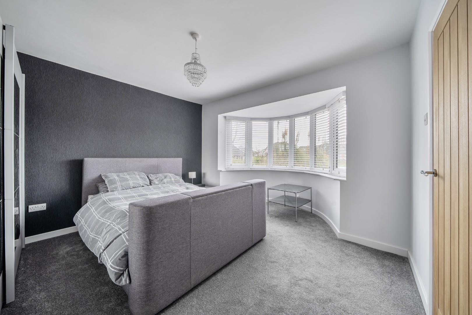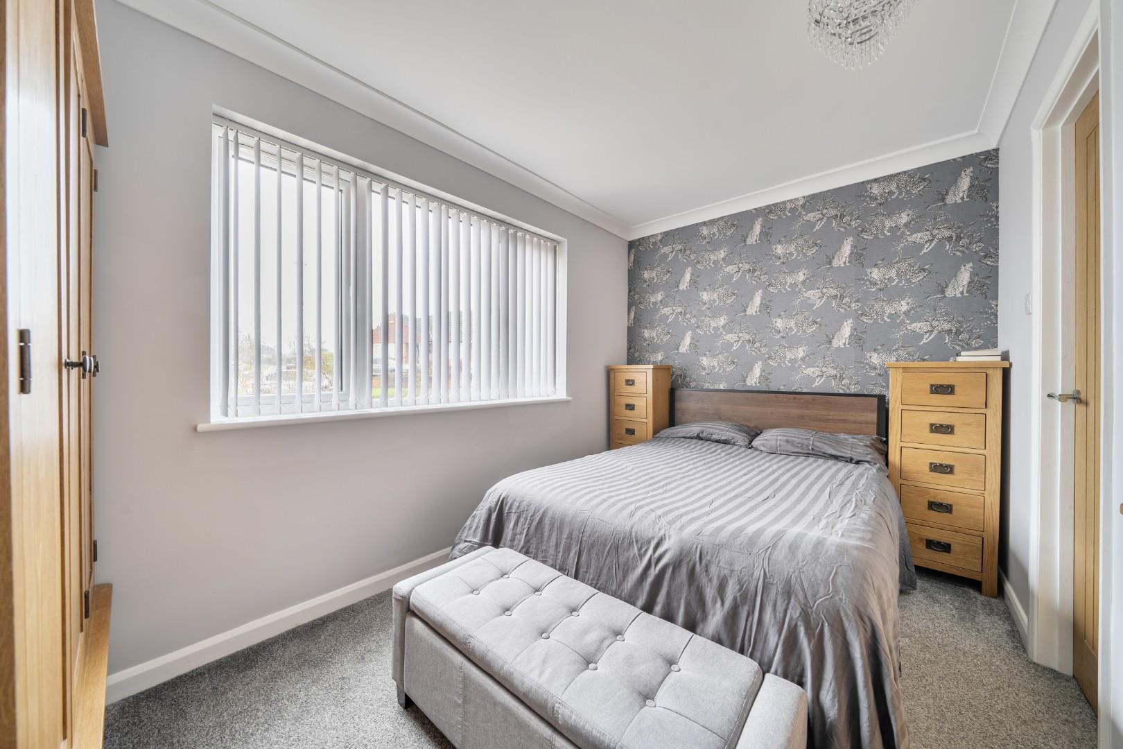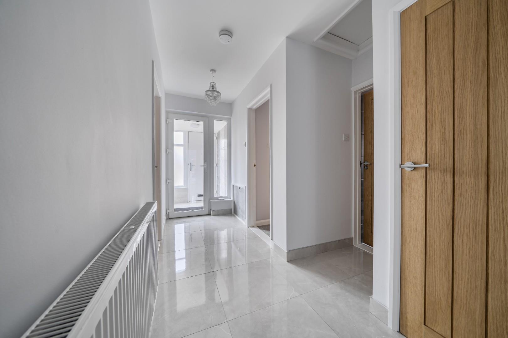 Upon entering, you are welcomed by an extended porch, providing a practical space for coats and shoes. To the left, a bedroom features an en-suite, ensuring privacy and convenience ideal for a guest room . Opposite, the master bedroom is another generous double boasting a wonderful bay-window flooding the room with sunlight. Further down the hallway, you will find a contemporary bathroom, complete with a bath and double sinks, catering to all your needs.