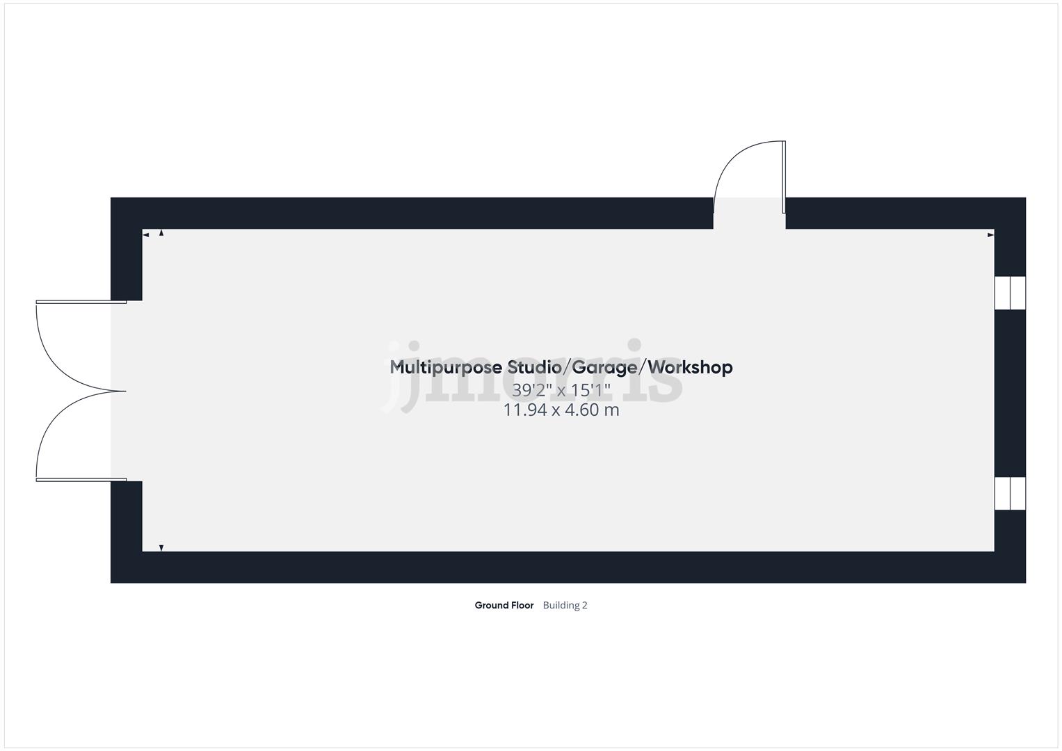 - Multipurpose Garage/Workshop/Studio Building 40' x 15' which is fully Insulated, having 6 Velux Windows Double Wooden Vehicle Entrance Doors as well as a Pedestrian Door and a Workbench