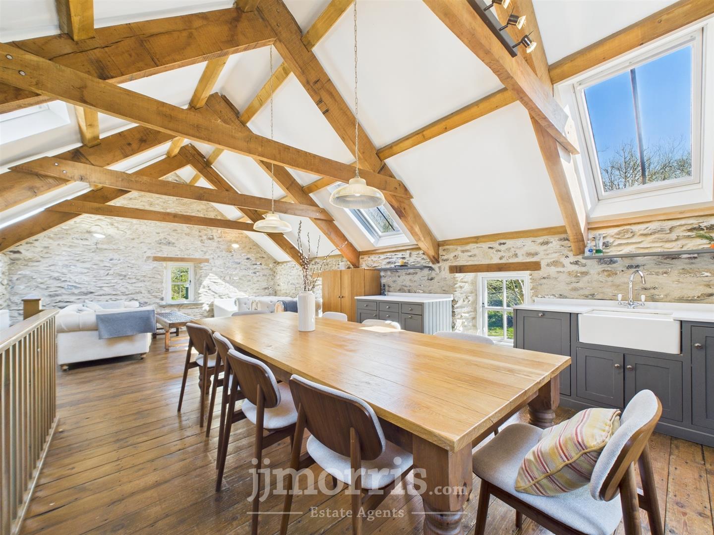 - Character accommodation with First Floor Open Plan Living Room/Kitchen, 3 Bedrooms, 2 Bathrooms, 2 Offices and a Conservatory/Studio