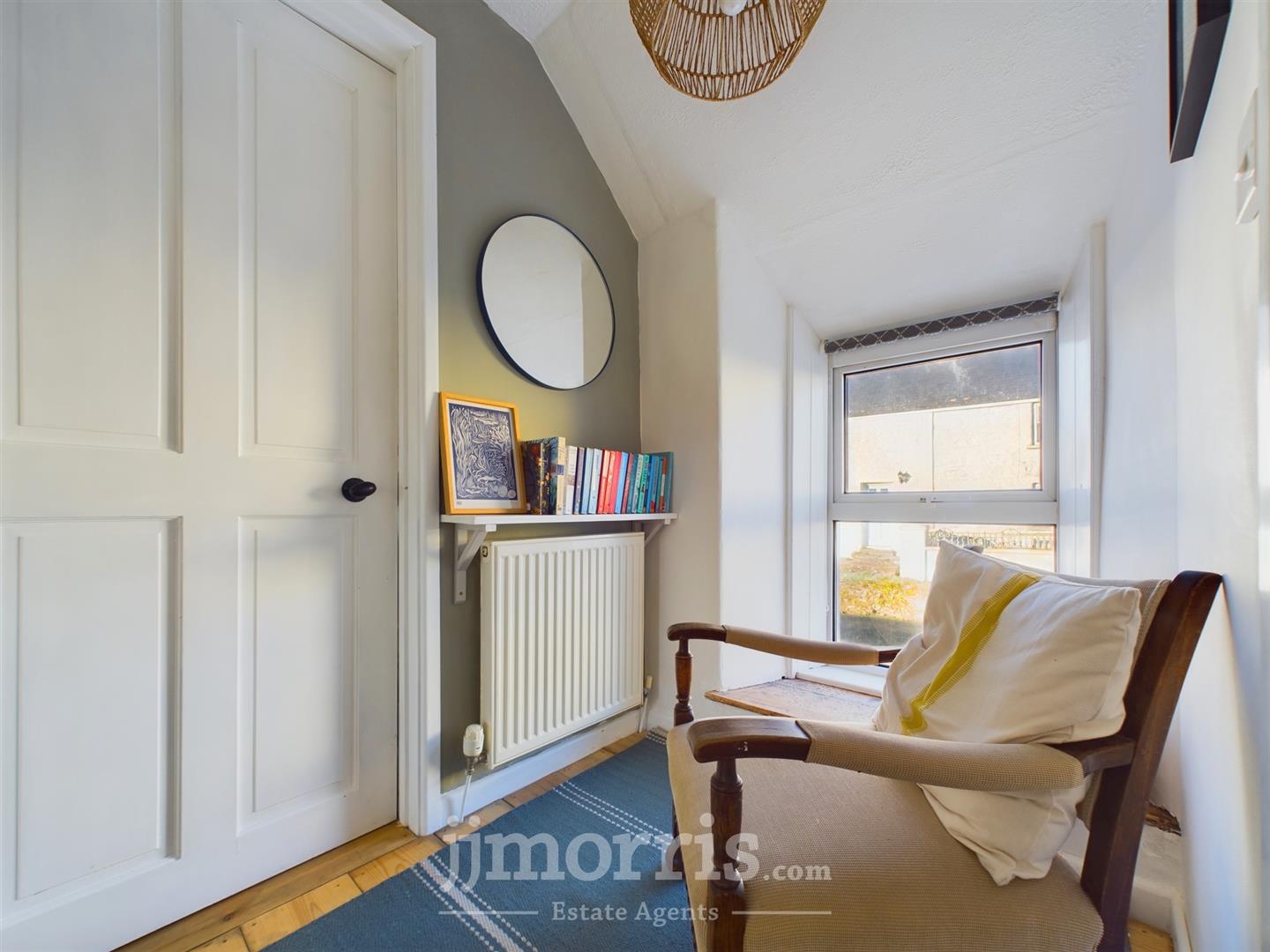 Main Landing - 1.93m x 1.40m (6'4" x 4'7") - With Pine floorboards, radiator, uPVC double glazed window with roller blind, mains smoke detector, ceiling light, access to an Insulated Loft and doors to Bedroom 2 and :-