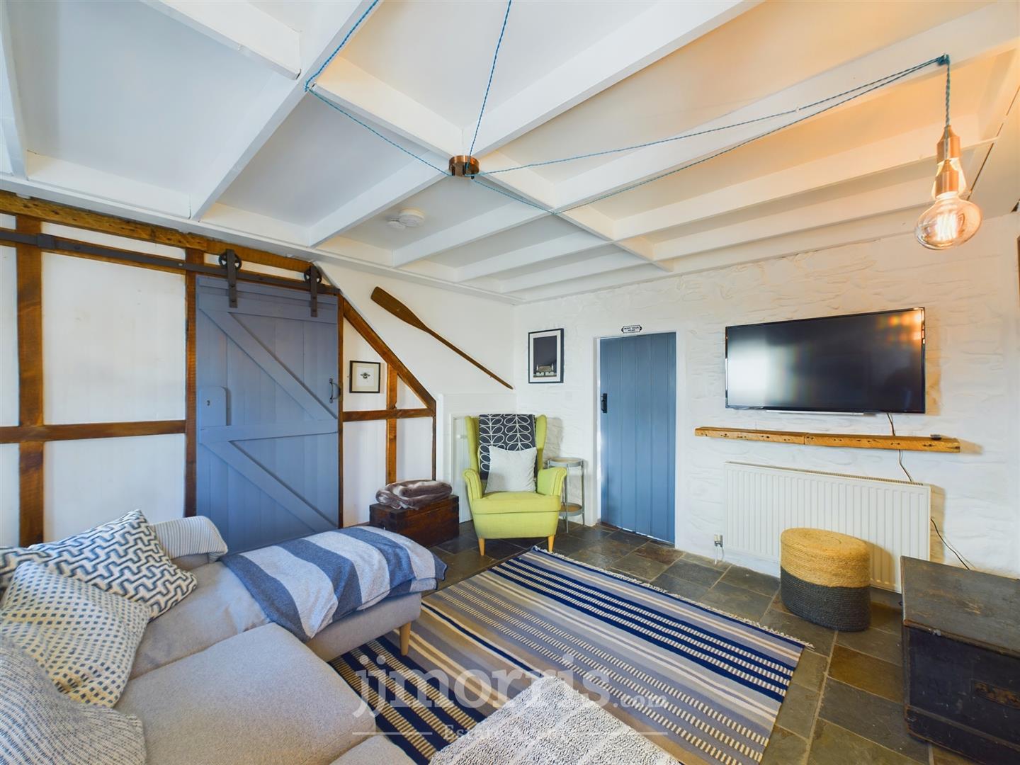 Hall - 1.68m x 1.35m (5'6" x 4'5") - With coir matting, coat hooks, open beam ceiling, Meter Cupboard, whitened tongue and groove walls and opening to:-
