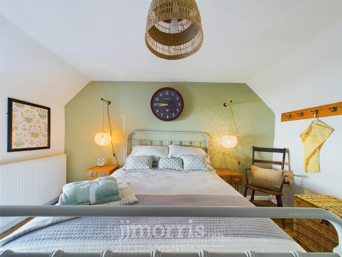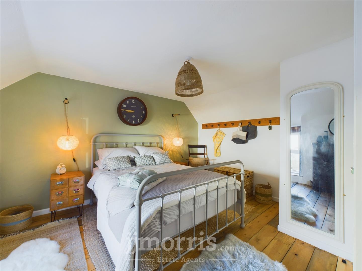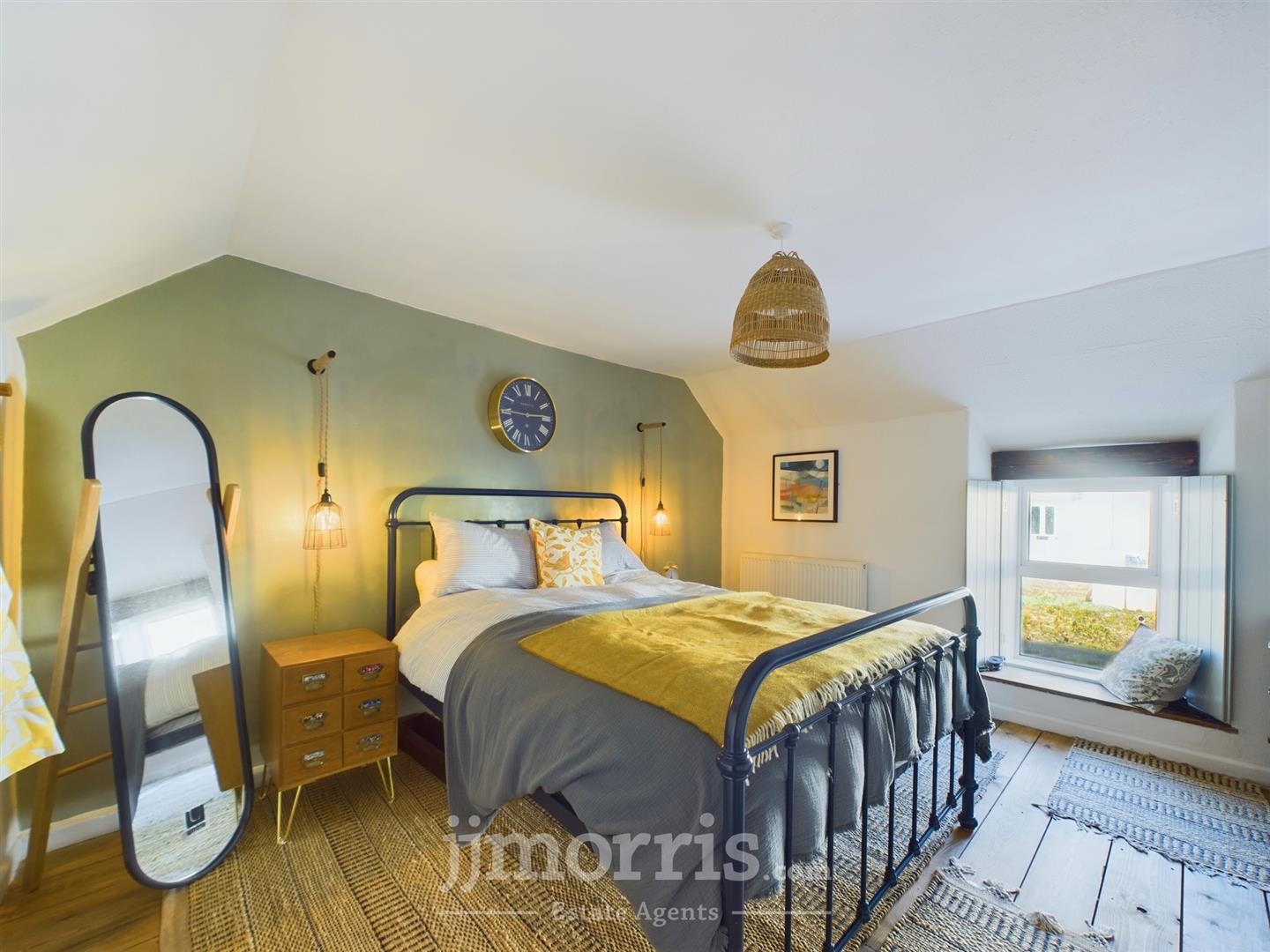 Bedroom 1 - 3.99m x 3.51m (13'1" x 11'6") - With Pine floorboards, uPVC double glazed window with shutters, double panelled radiator, ceiling light, 6 power points and a bespoke Oak Clothes Rail/Board with robe hooks.
