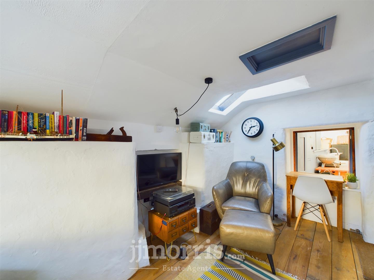 Study/Bedroom 4 - 4.04m x 2.21m (13'3" x 7'3") - With an insulated Pine floor, double glazed conservation skylight, serving hatch to Utility Room, ceiling light, 6 power points, uPVC double glazed window with roller blind, double panelled radiator, wall light and access to Loft.