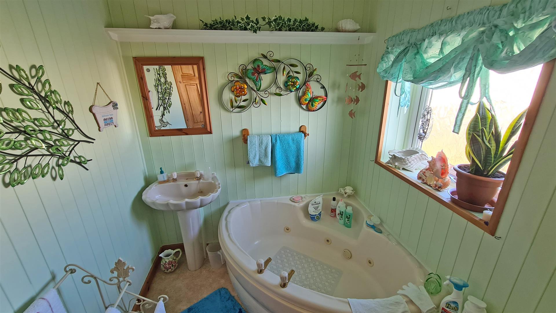 Family Bathroom - 2.3 x 2.3 (7'6" x 7'6") - Obscure double glazed window to rear, low level W.C, wash hand basin, corner jacuzzi bath, radiator.