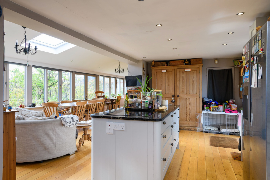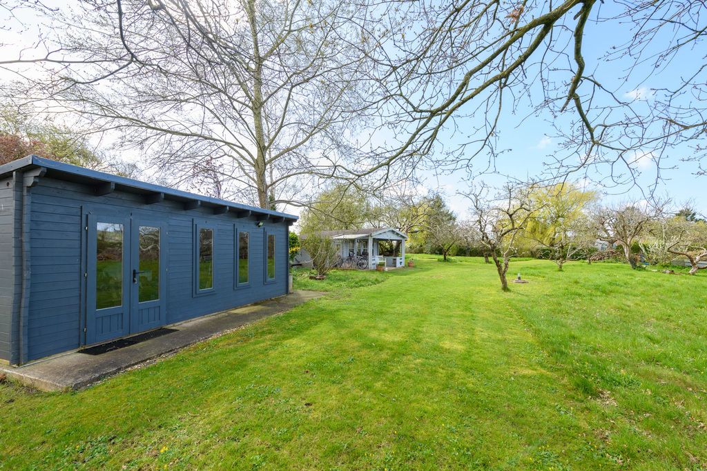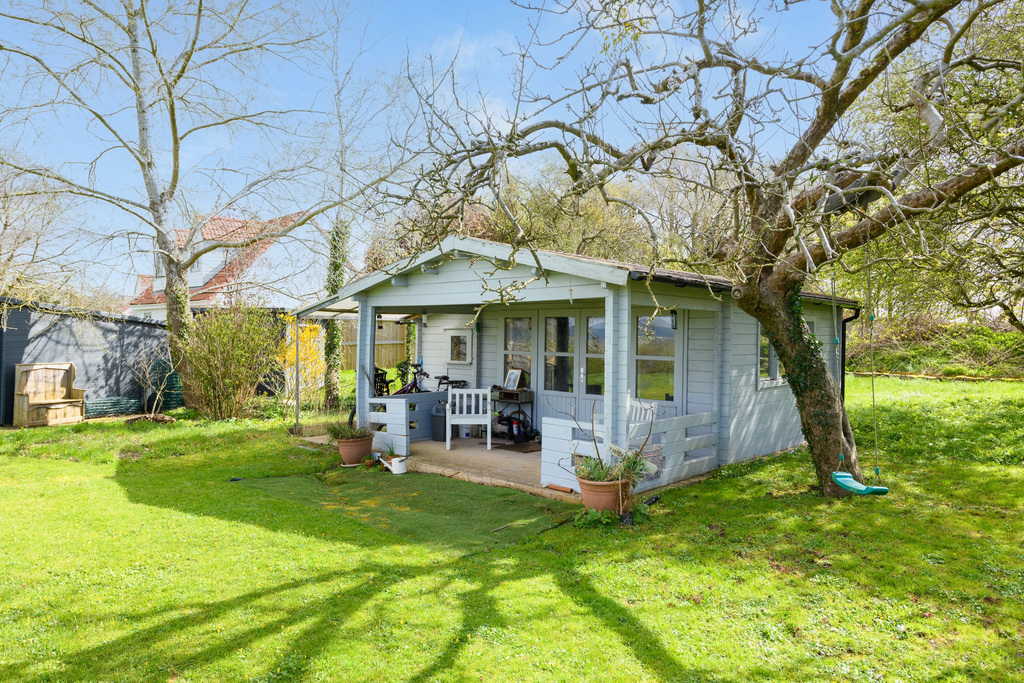 - Extensive gardens with mature planting, fruit trees, greenhouse and two fully insulated cabins, providing additional workspace, hobbies rooms or guest accommodation