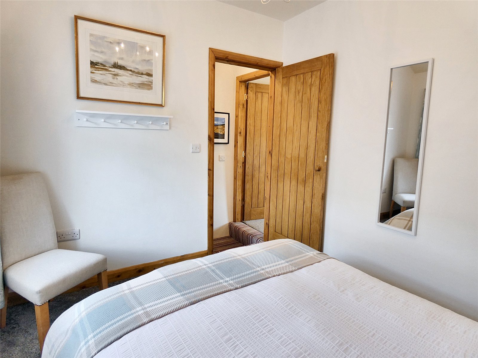 On the ground floor is a lovely, well fitted kitchen with integrated appliances, a modern shower room and spacious sitting room. Upstairs are two good double bedrooms, the master having long distance views to the North-East.