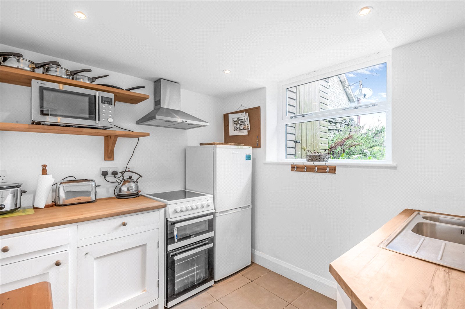 Kitchen Tiled flooring with underfloor heating. Downlights. Range of base units with complimentary solid wood worktops. Stainless steel one and a half bowl sink. Plumbing for washing machine. Freestanding electric oven. Integrated extractor hood. Space for fridge freezer. Window to the rear of the property.