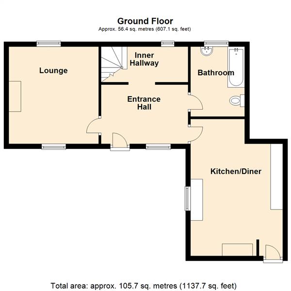 The accommodation provides on the ground floor reception hall, sitting room with fireplace, spacious dining kitchen, inner lobby with staircase and downstairs bathroom. The first floor provides three bedrooms (the middle bedroom non-private). The property is subject to a flying freehold with part of a bedroom to Beech Cottage located over the ground floor bathroom of Bumble Bee Hall.