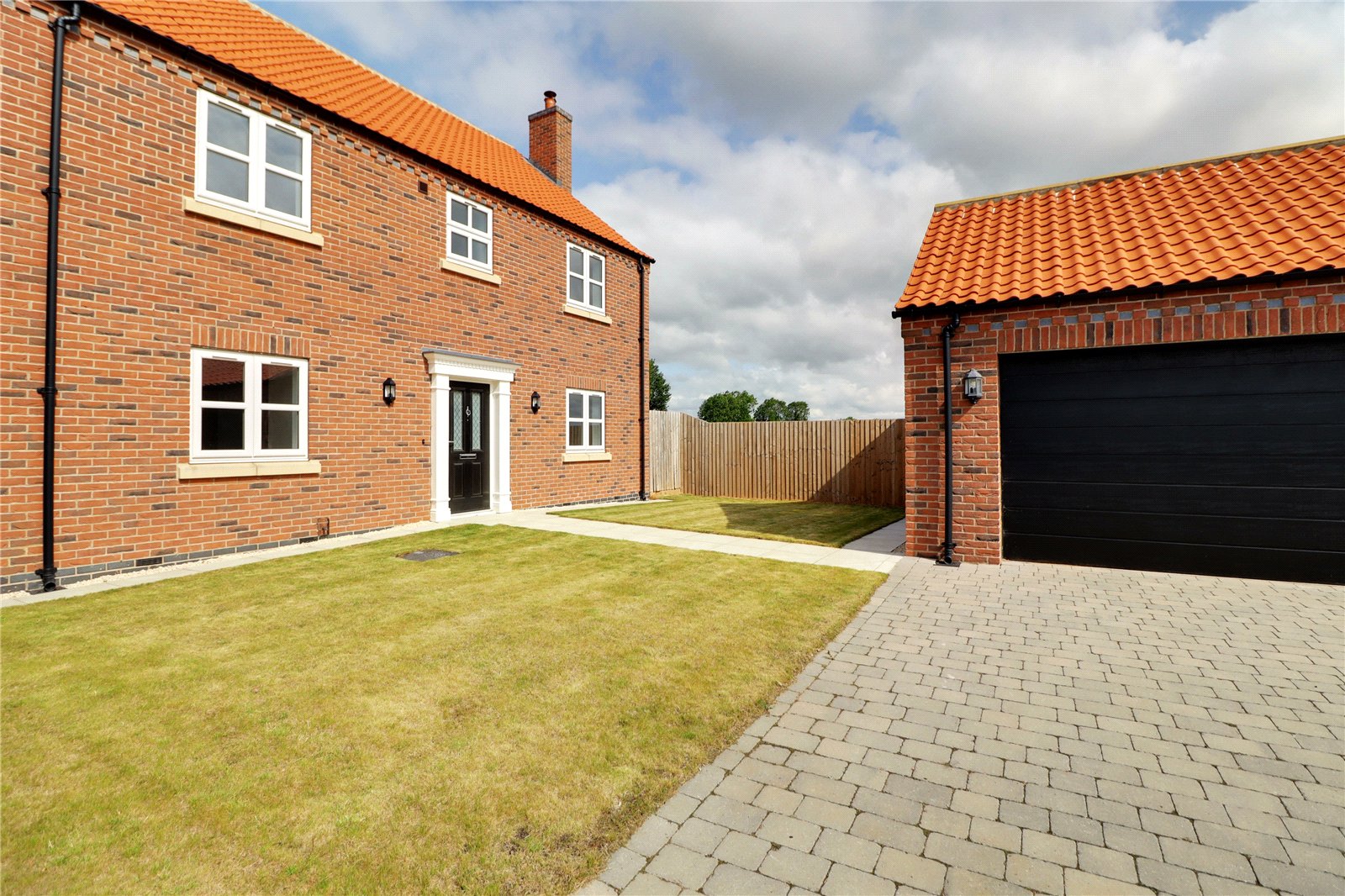 FANTASTIC CORNER PLOT WITH REAR & SIDE OPEN COUNTRYSIDE VIEWS ** An outstanding brand new detached executive detached family home located within a highly desirable semi-rural location enjoying excellent views and set within a select development of 5 further homes. The well-appointed accommodation approaches 1700 sq ft and comes well-arranged over 2 floors enjoying a quality finish throughout that includes, internal oak doors, German bespoke kitchen with quartz tops and integral appliances, travertine flooring and Porcelanosa bathroom fittings. A central reception hallway provides a welcoming entrance with a cloakroom and access to a formal front living room, a large open plan living/dining kitchen is an excellent area to entertain with twin bi-folding doors leading into the garden, there is a side entrance with useful storage and a matching utility room. The first floor enjoys a central landing with a built-in storage cupboard, luxury master bedroom suite with a dressing area and en-suite shower room, 3 further spacious bedrooms with a second en-suite shower room and main family bathroom. The front provides a generous block paved driveway allowing extensive parking with direct access to the double garage, adjoining soft landscaped lawned gardens with a flagged pathway lead to the front door. The private enclosed rear garden comes lawned with a seating area that can be accessed from the kitchen. Finished with full double glazing and air source heating providing excellent efficiency. Viewing comes with the agents highest of recommendations. View via our Epworth office.