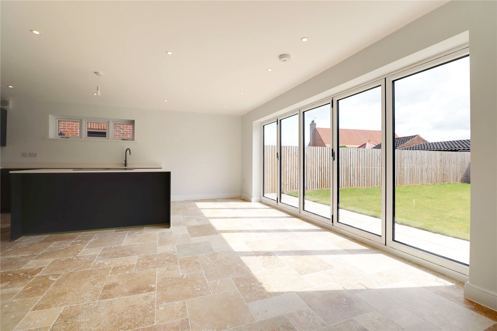 An outstanding brand new detached executive detached family home located within a highly desirable semi-rural location enjoying excellent views and set within a select development of 5 further homes. The well-appointed accommodation approaches 2200 sq ft (including the garage) and comes well-arranged over 2 floors enjoying a quality finish throughout that includes, internal oak doors, German bespoke kitchen with quartz tops and integral appliances, travertine flooring and Porcelanosa bathroom fittings. A central reception hallway provides a welcoming entrance with a cloakroom and access to a formal front living room, a large open plan living/dining kitchen is an excellent area to entertain with bi-folding doors leading into the garden, from the kitchen is a spacious matching utility room with personnel door into the garage. The first floor enjoys a central landing with a built-in storage cupboard, luxury master bedroom suite with a dressing area and en-suite shower room, 3 further spacious bedrooms with a second en-suite shower room and main family bathroom. The front provides a generous block paved driveway allowing extensive parking with direct access to the double garage and a large side lawn with a traditional railed boundary. The private enclosed rear garden comes lawned with a seating area that can be accessed from the kitchen. Finished with full double glazing and air source heating providing excellent efficiency. Viewing comes with the agents highest of recommendations. View via our Epworth office.