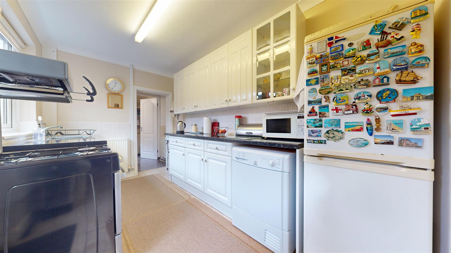 To the rear of the property is a modern fitted kitchen featuring ample cupboard and worktop space, along with a stylish ground floor shower room for added convenience.