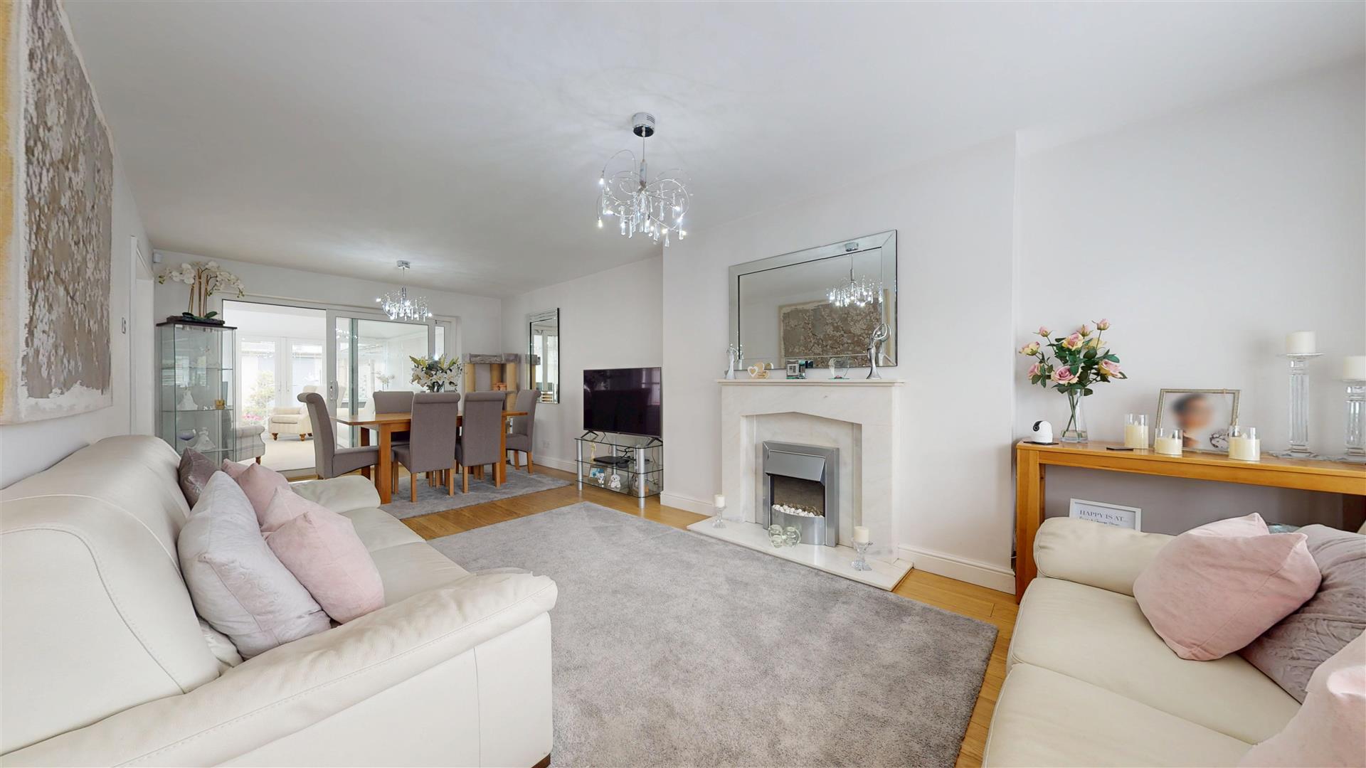 From the living room, you flow seamlessly into the modern white kitchen diner. At the rear is a truly stunning orangery. This space offers a perfect retreat to relax or entertain, with beautiful views over the fabulous, private rear garden.